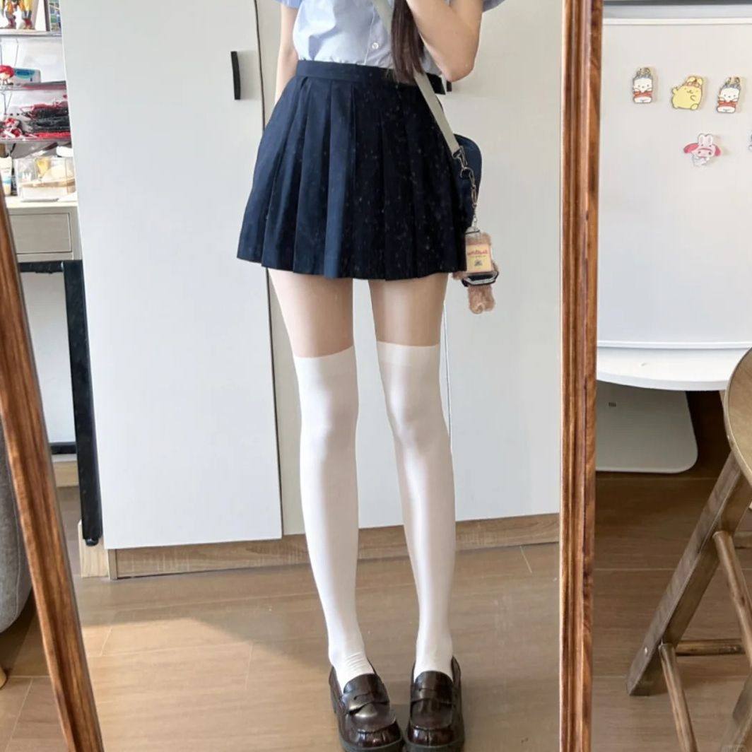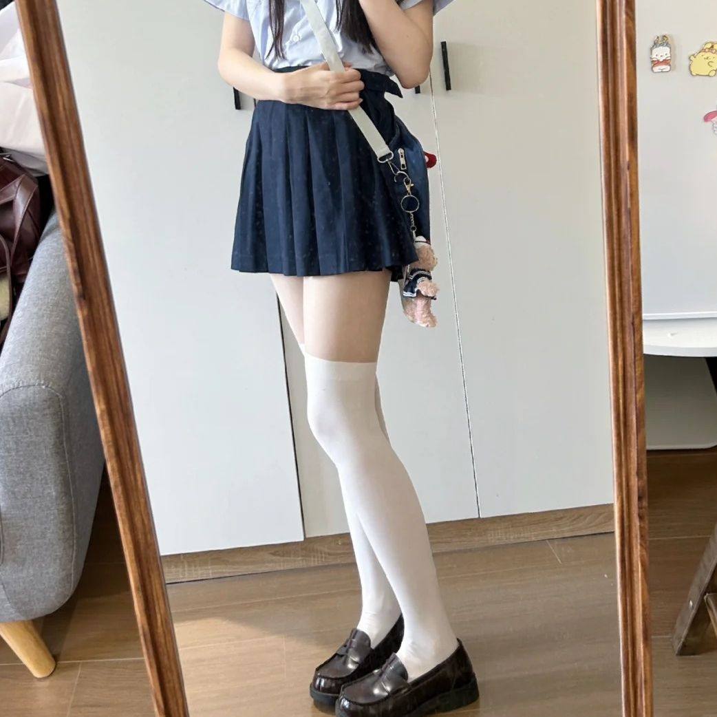 ins日系白色天鹅绒120D不透肉过膝高筒袜JK长筒百搭经典打底丝袜
