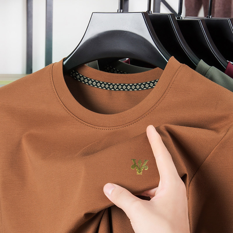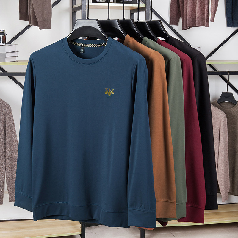 男士红色长袖T恤春秋季新款中年爸爸装本命年打底上衣服圆领卫衣