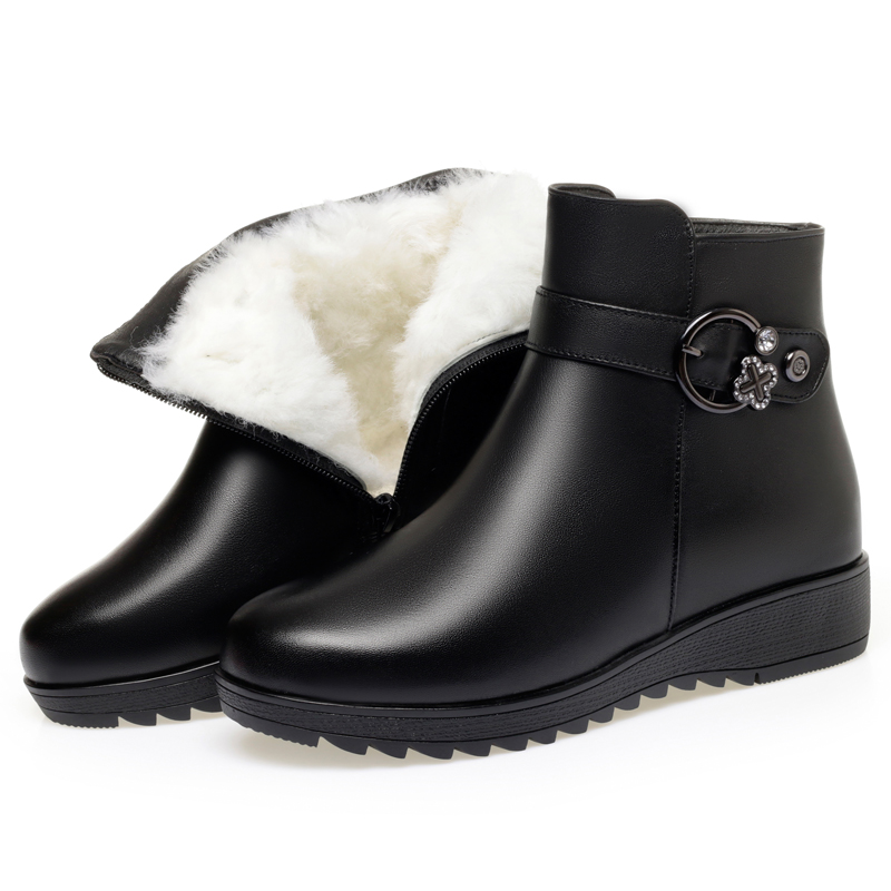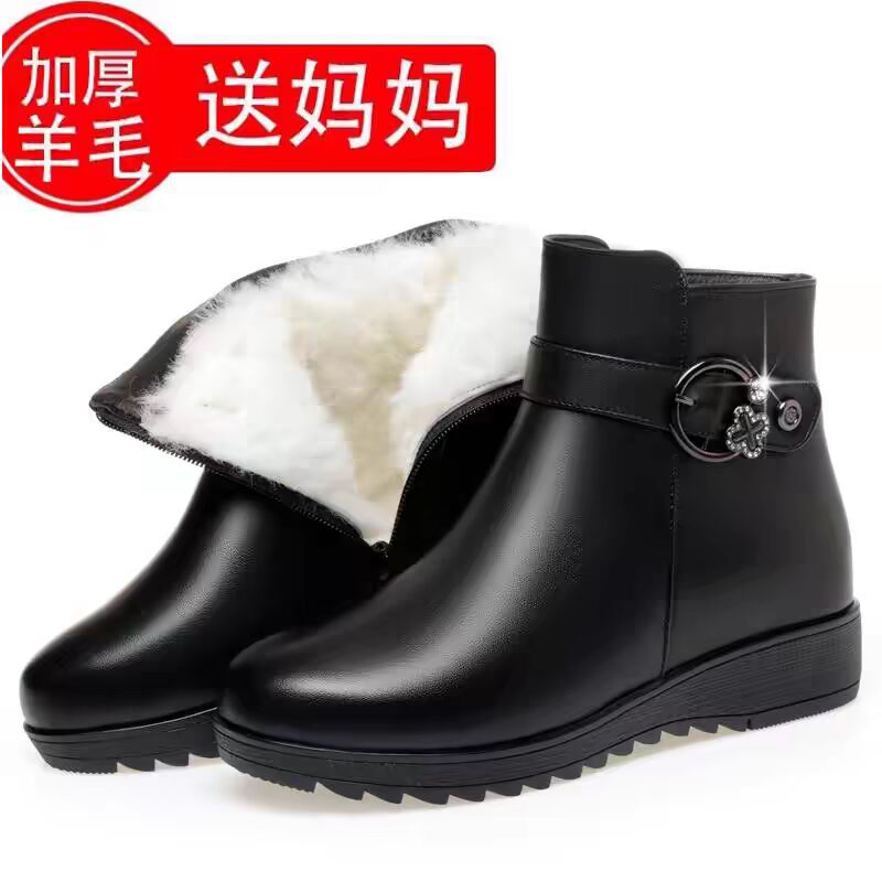 冬季妈妈棉鞋真皮羊毛中老年女鞋老人奶奶鞋加绒保暖软底防滑短靴