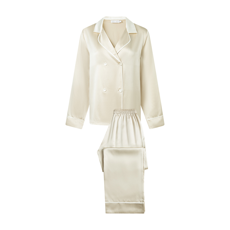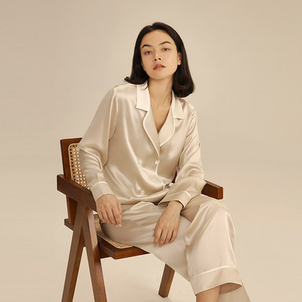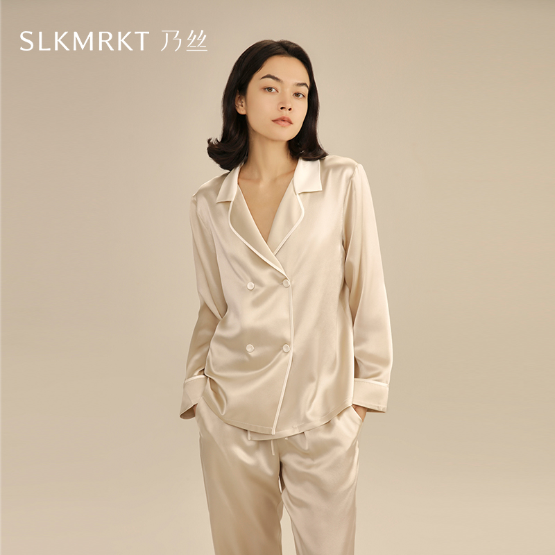 SLKMRKT乃丝真丝睡衣套装100桑蚕丝家居服春秋女白色高级感19姆米