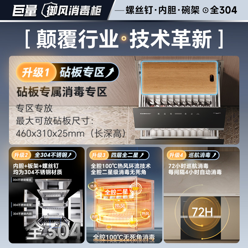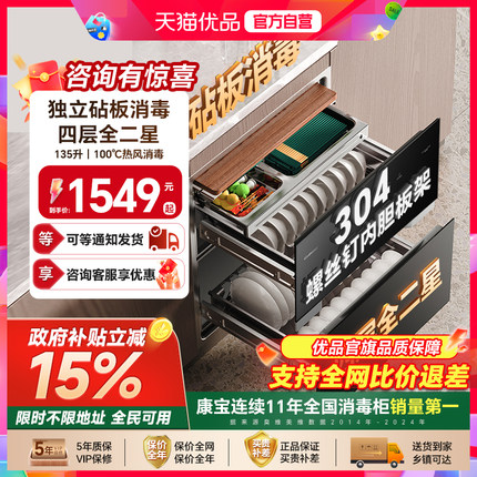 康宝ER800消毒柜家用嵌入式御风四层全二星大容量304不锈钢碗柜
