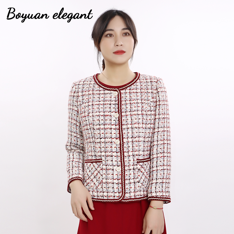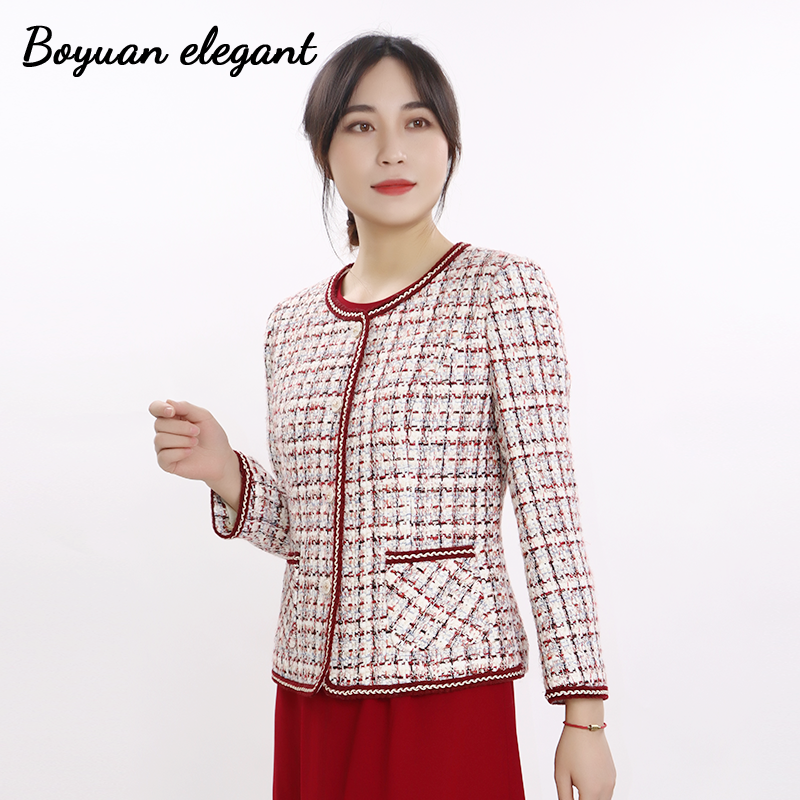 柏媛红色毛呢外套女小个子2025修身法式高级感优雅名媛风短款上衣