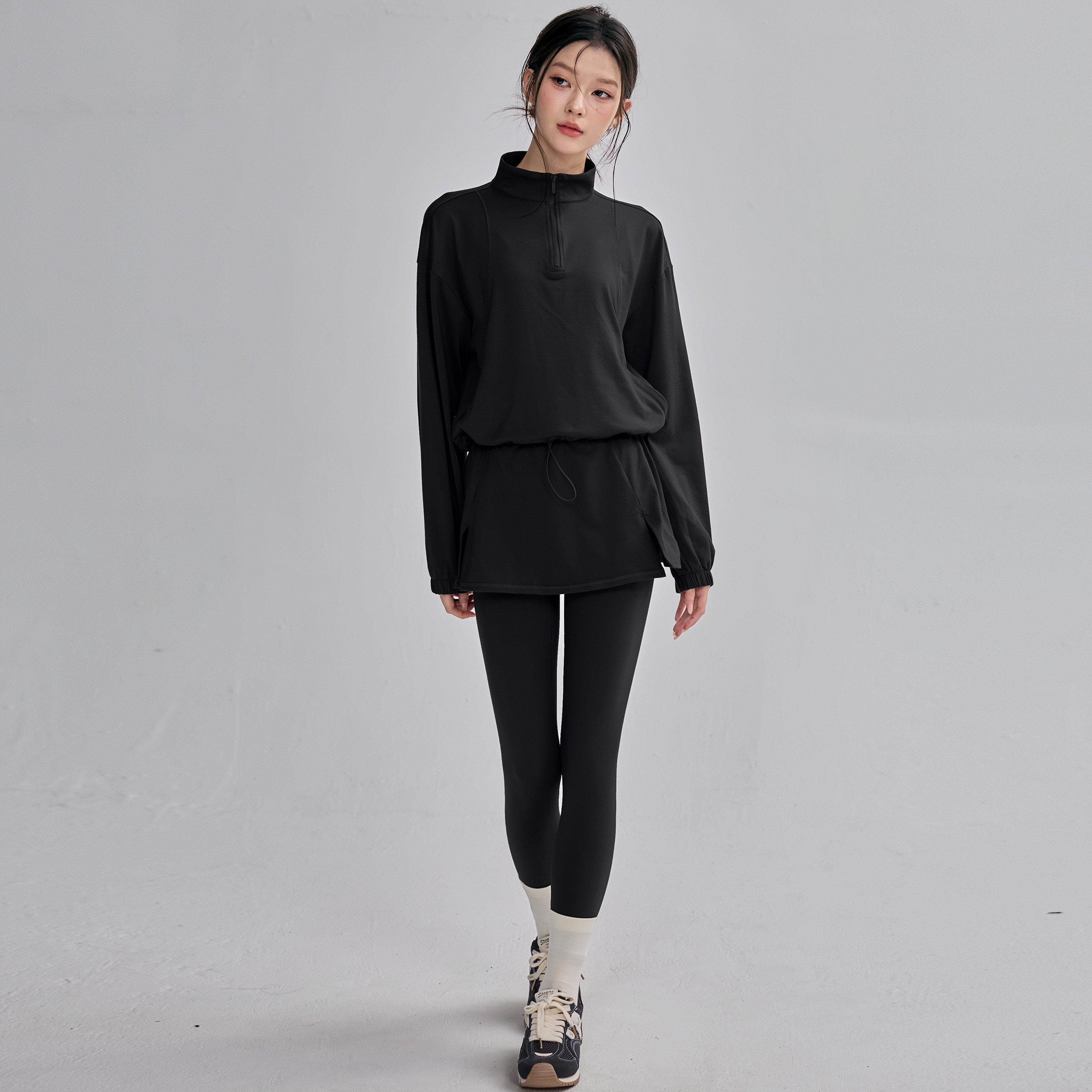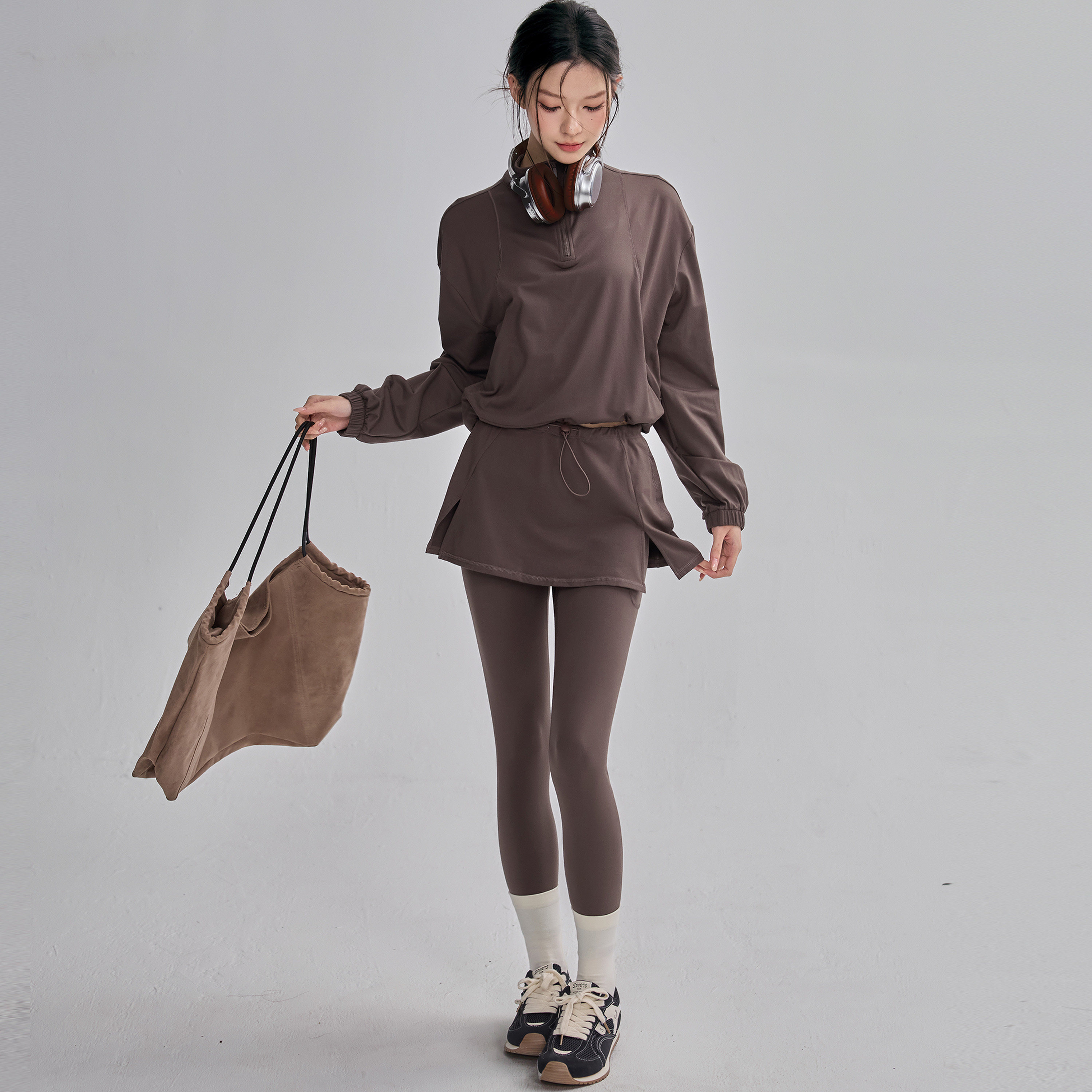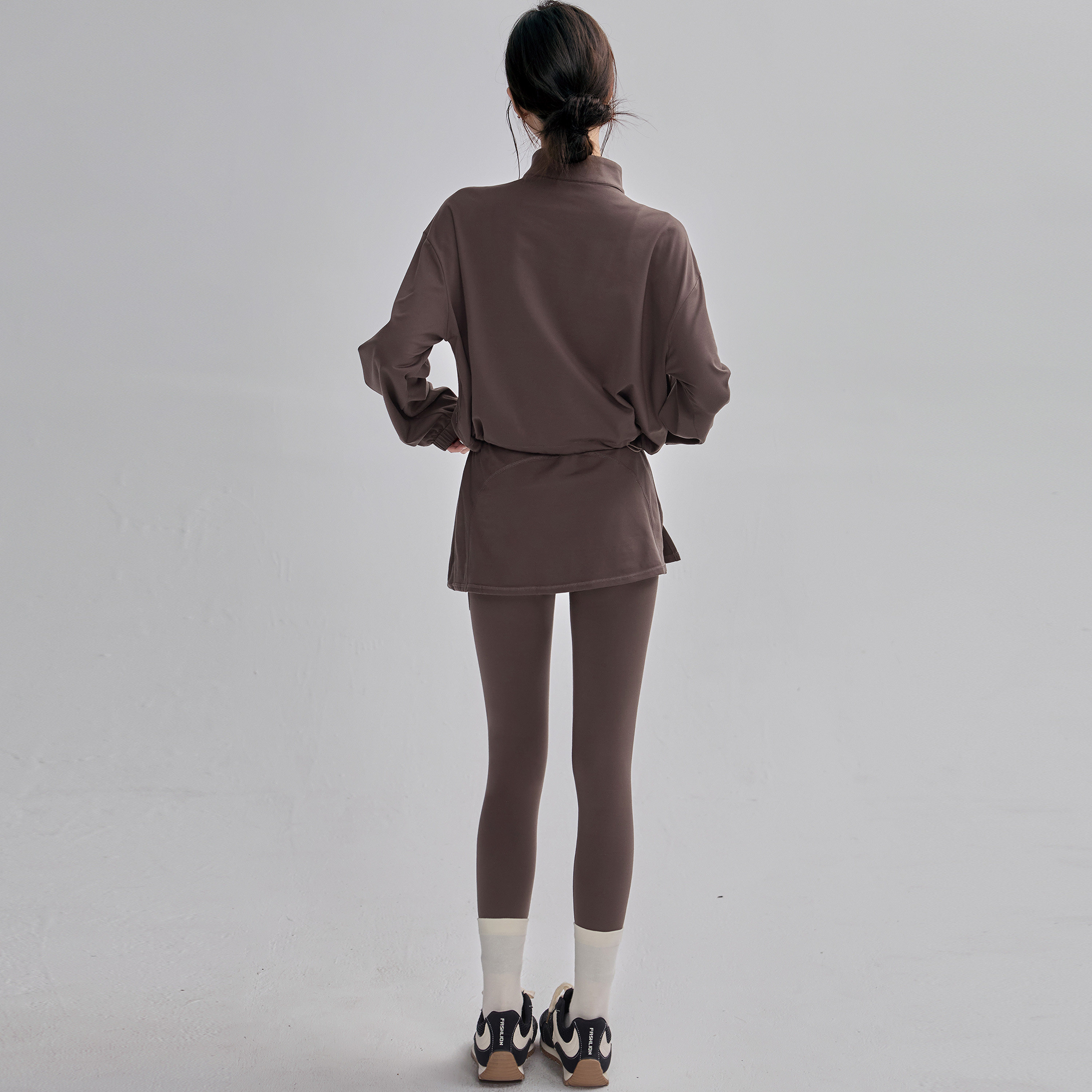 TEETKE运动套装休闲半拉链瑜伽服长袖户外跑步骑行训练健身两件套