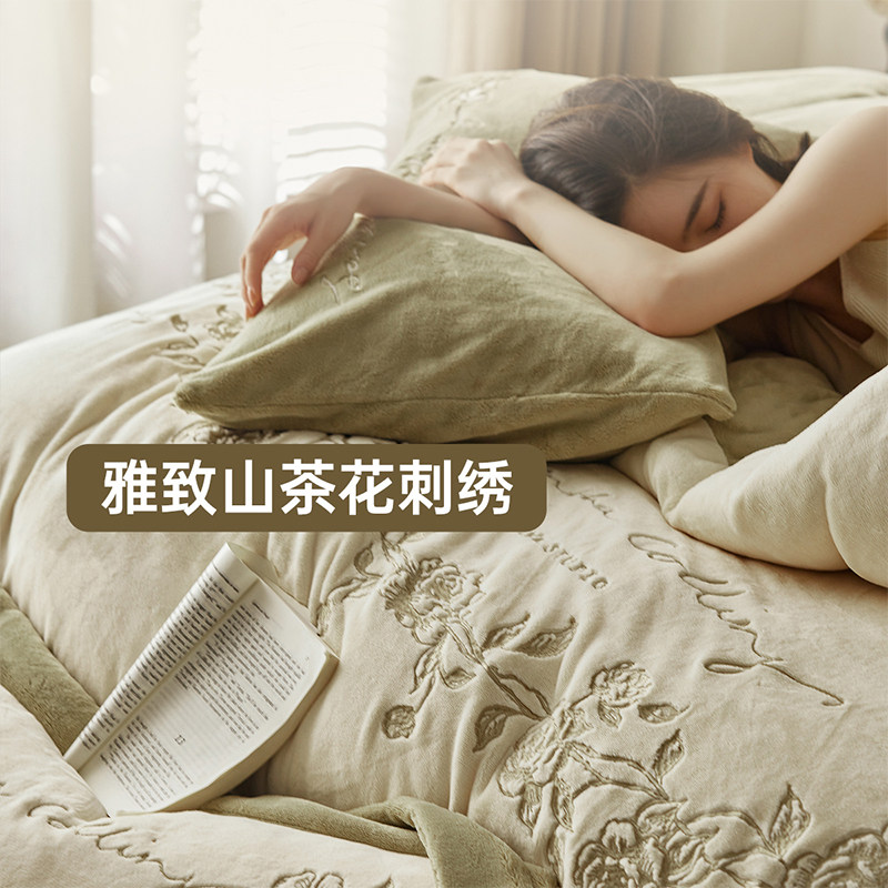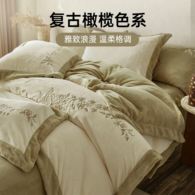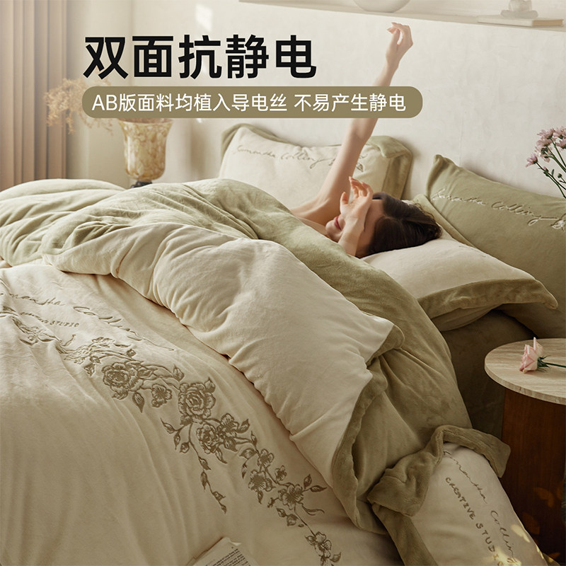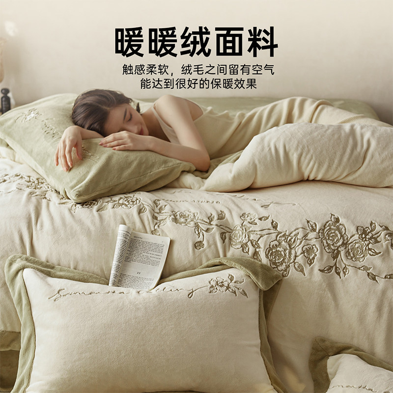 多喜爱冬季保暖绒四件套秋冬双面保暖珊瑚绒被套法兰绒刺绣套件