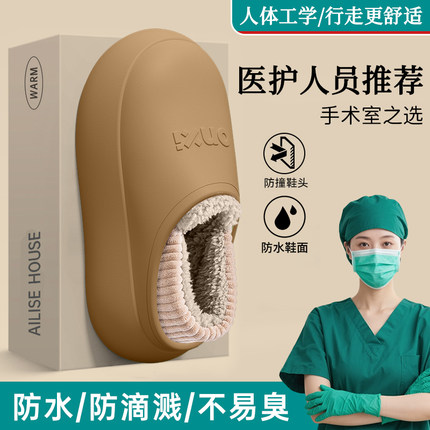 手术室棉拖鞋女士冬季包跟2025新款厚底外穿防水加绒保暖棉鞋女款