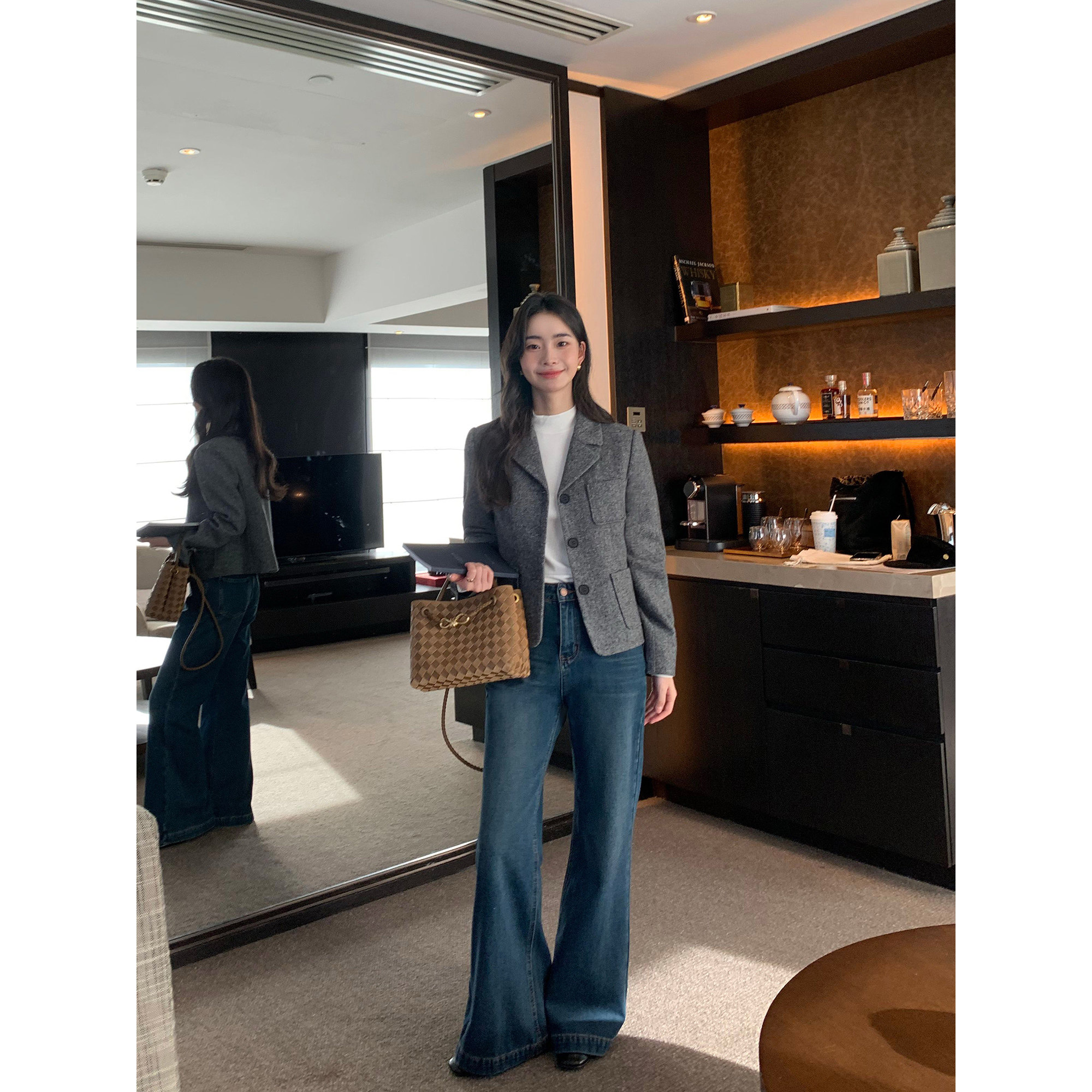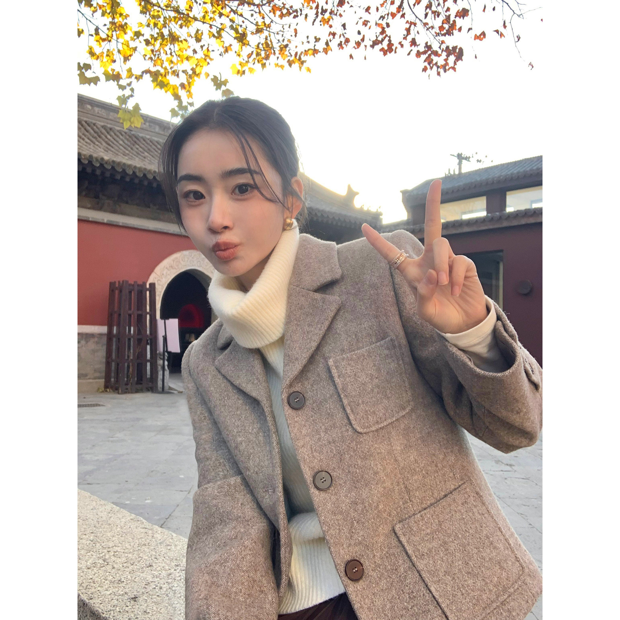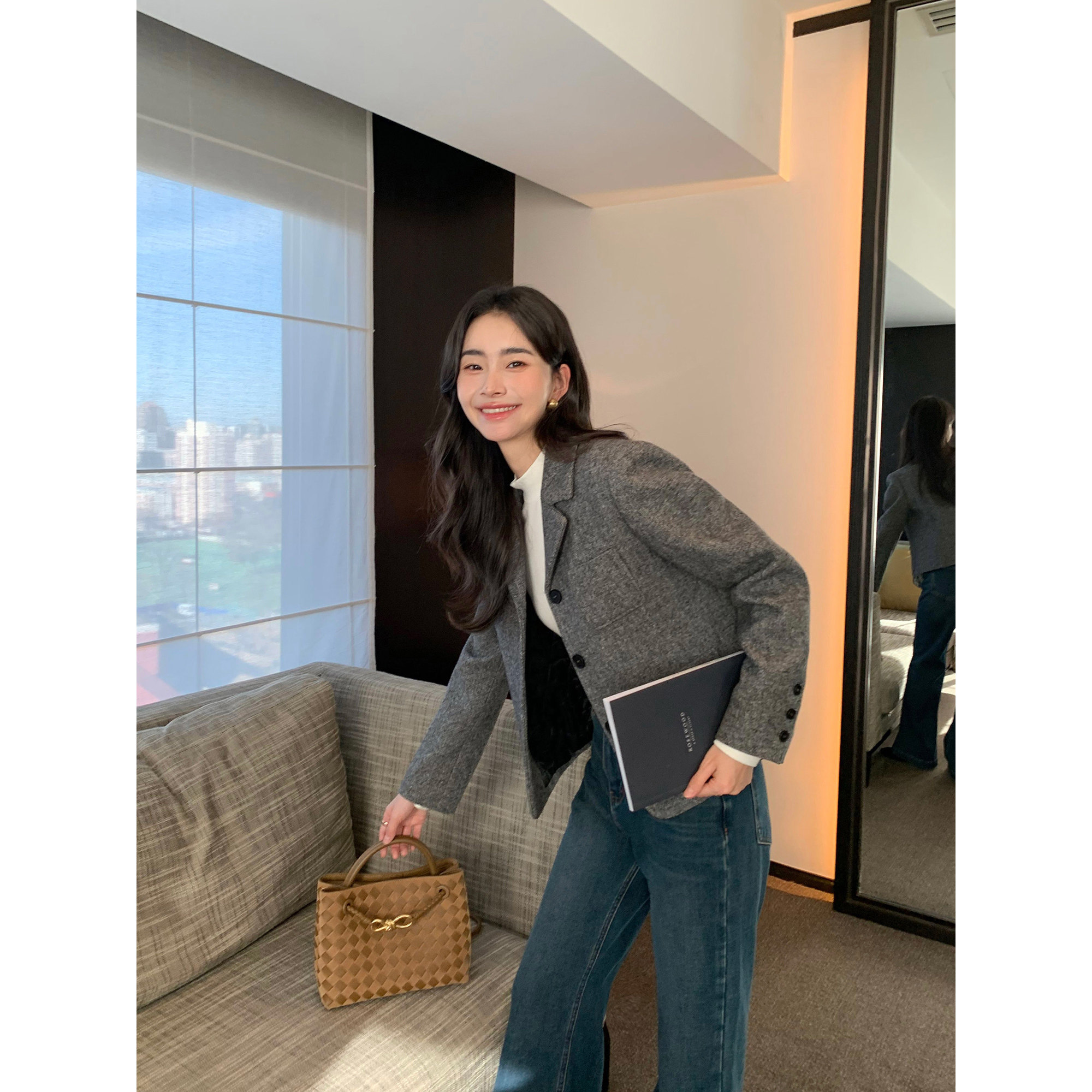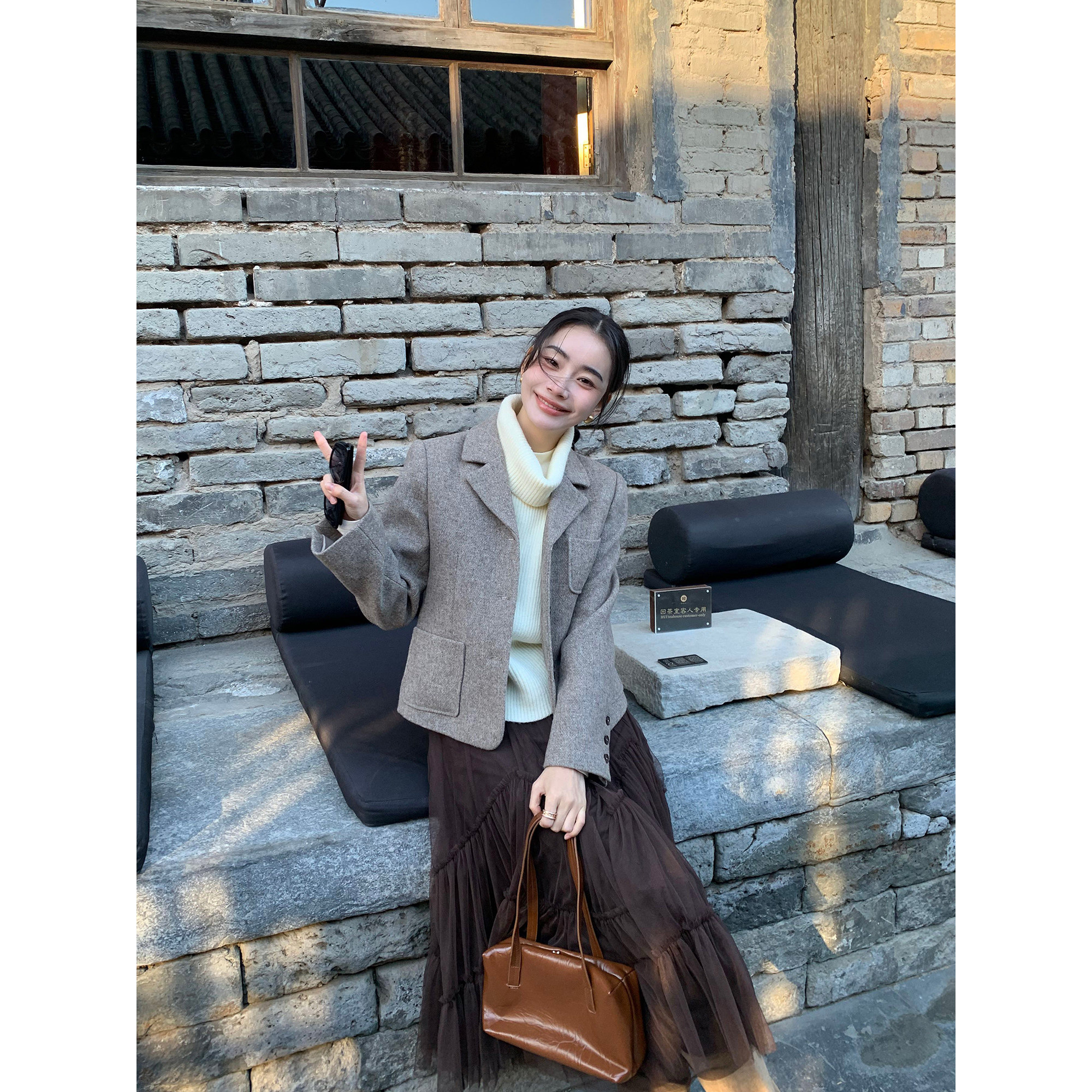 复古简约直身短西装外套