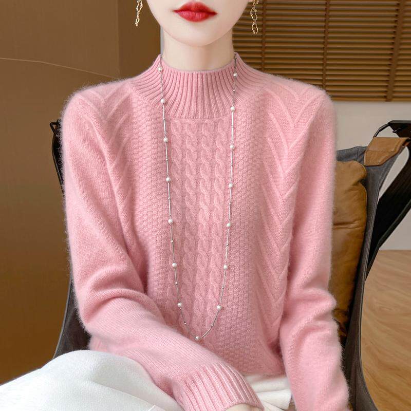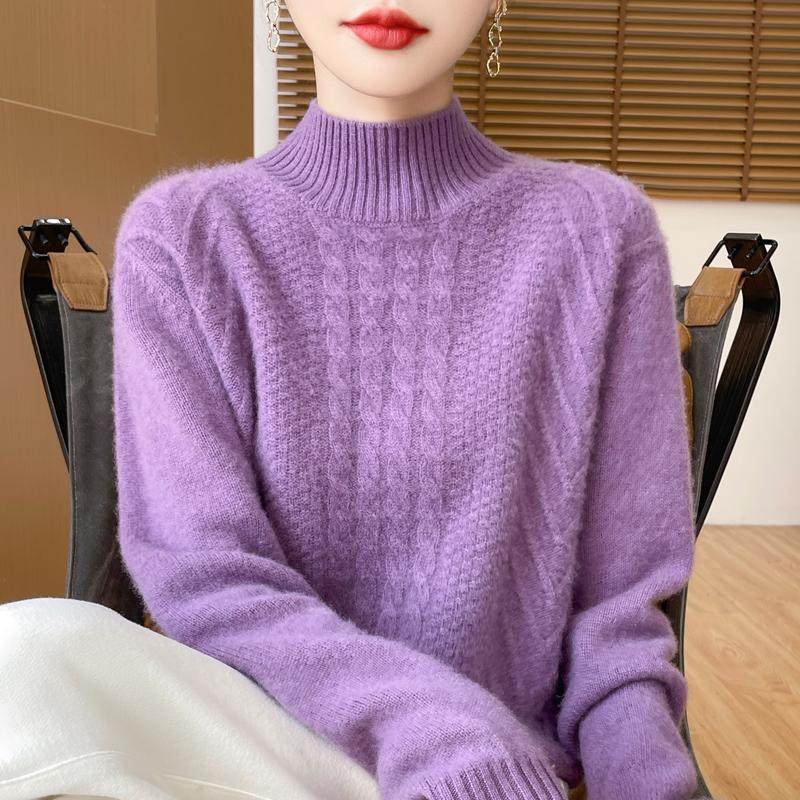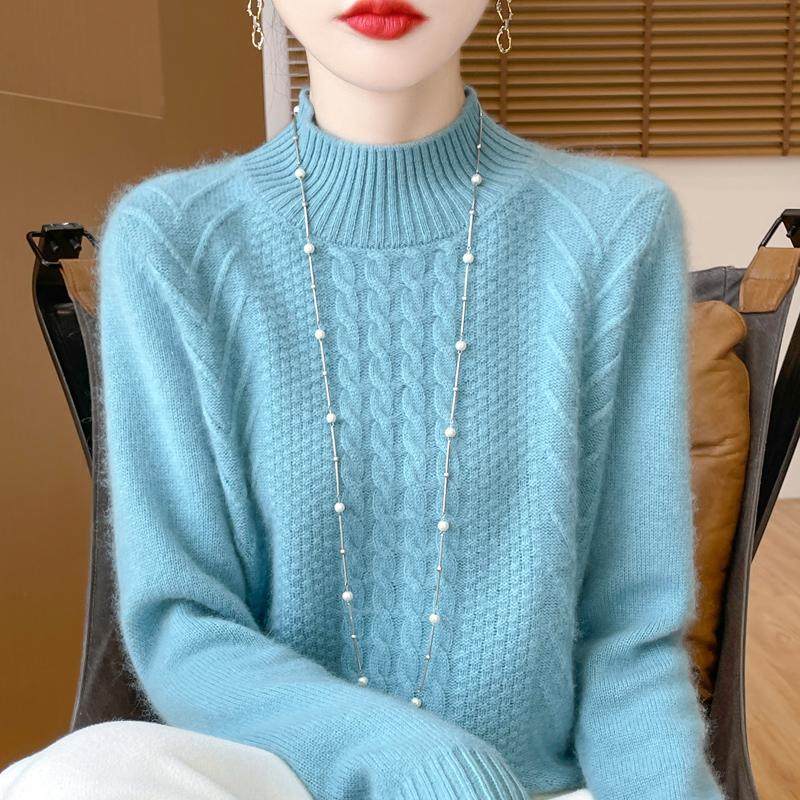 鄂尔多斯市产羊绒衫女100%山羊绒冬半高领宽松针织打底衫七针加厚