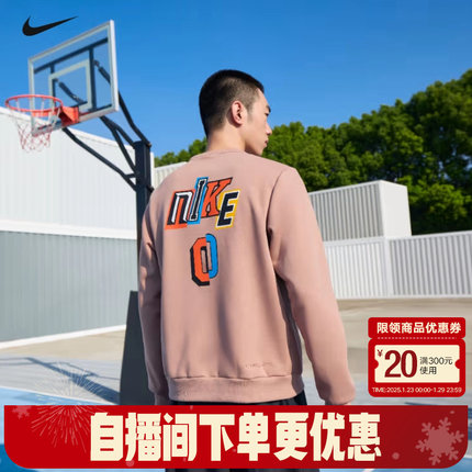 NIKE耐克男子加绒卫衣冬新款宽松印花圆领运动套头衫IO7916-271