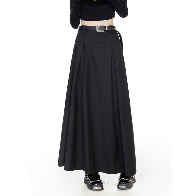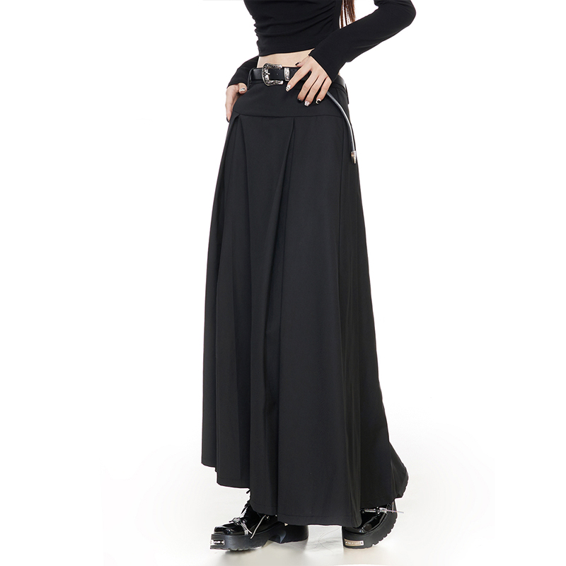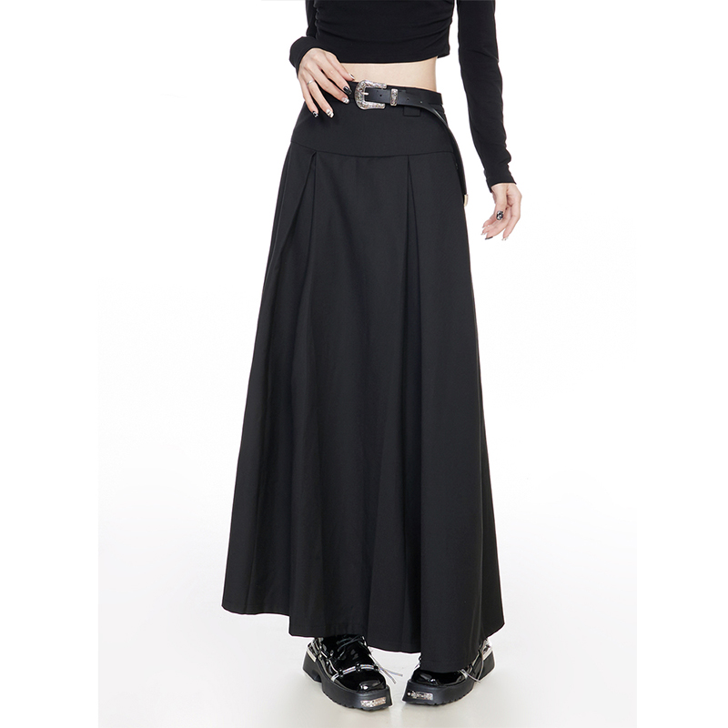 大码黑色西装百褶半身裙女2025秋季新款胖mm高腰显瘦垂感a字长裙