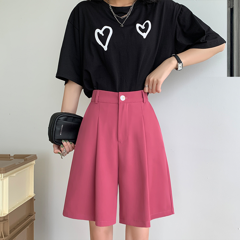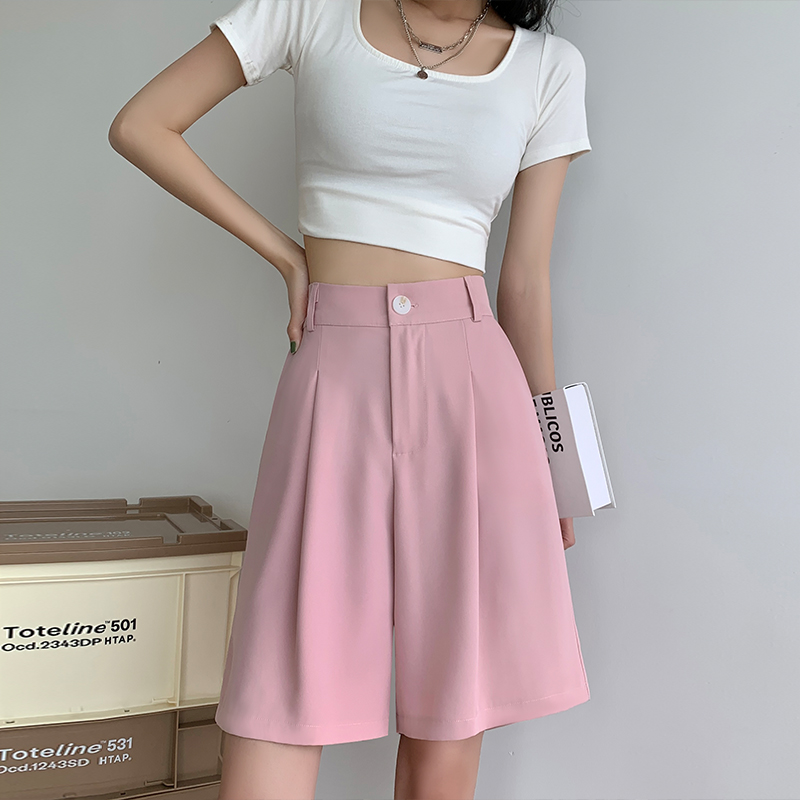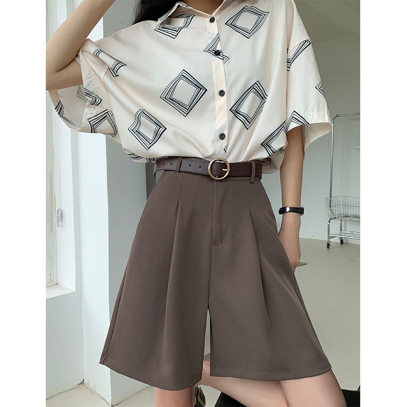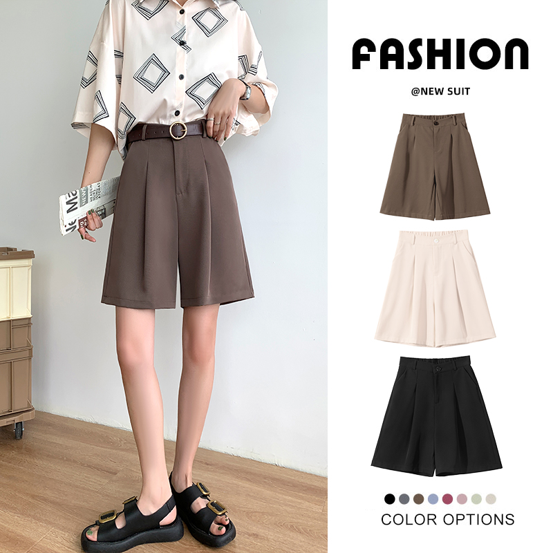 卡其色西装短裤女夏薄款宽松休闲阔腿高腰直筒a字显瘦五分裤中裤