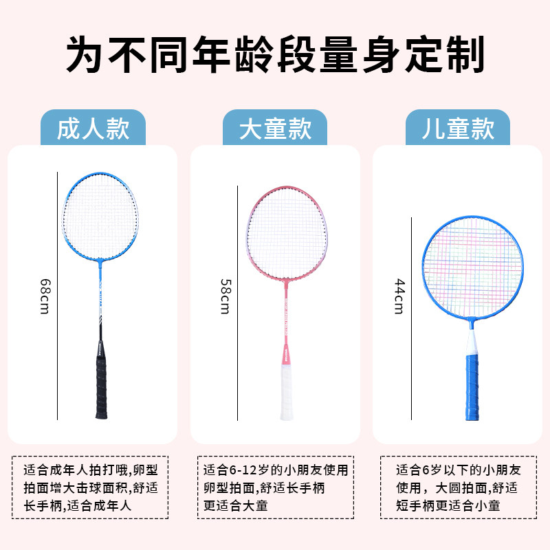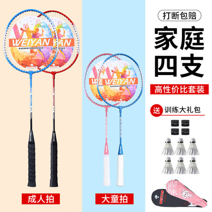 羽毛球拍亲子家庭套餐3支4支装成人儿童小学生初学者耐打超轻球拍