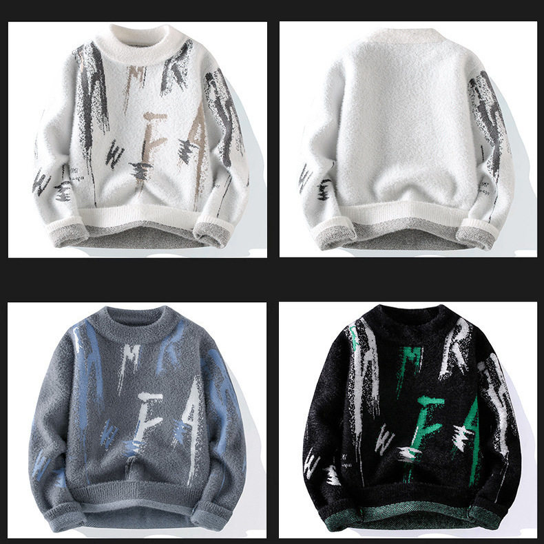 秋冬男士半高领字母保暖毛衣