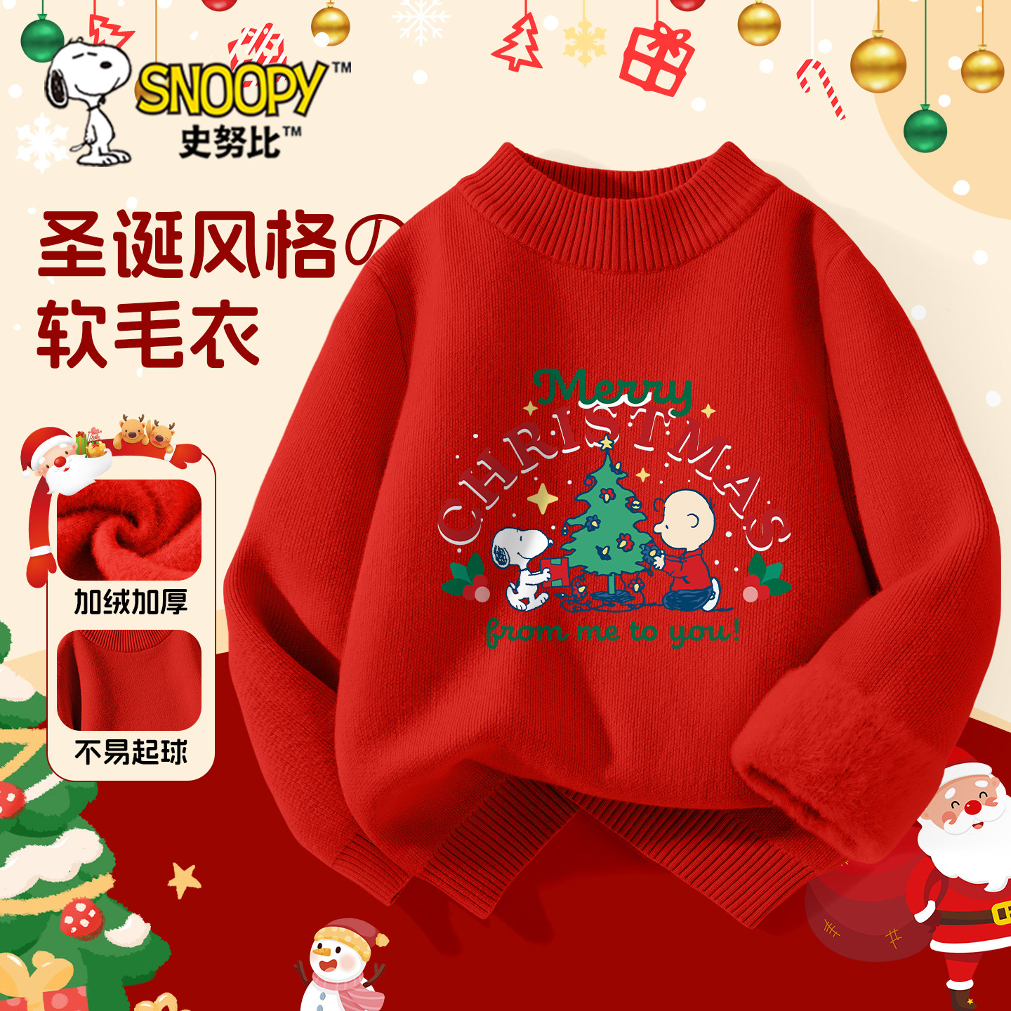 史努比儿童毛衣男孩2026新款冬季加绒针织衫女童线衣男童圣诞衣服