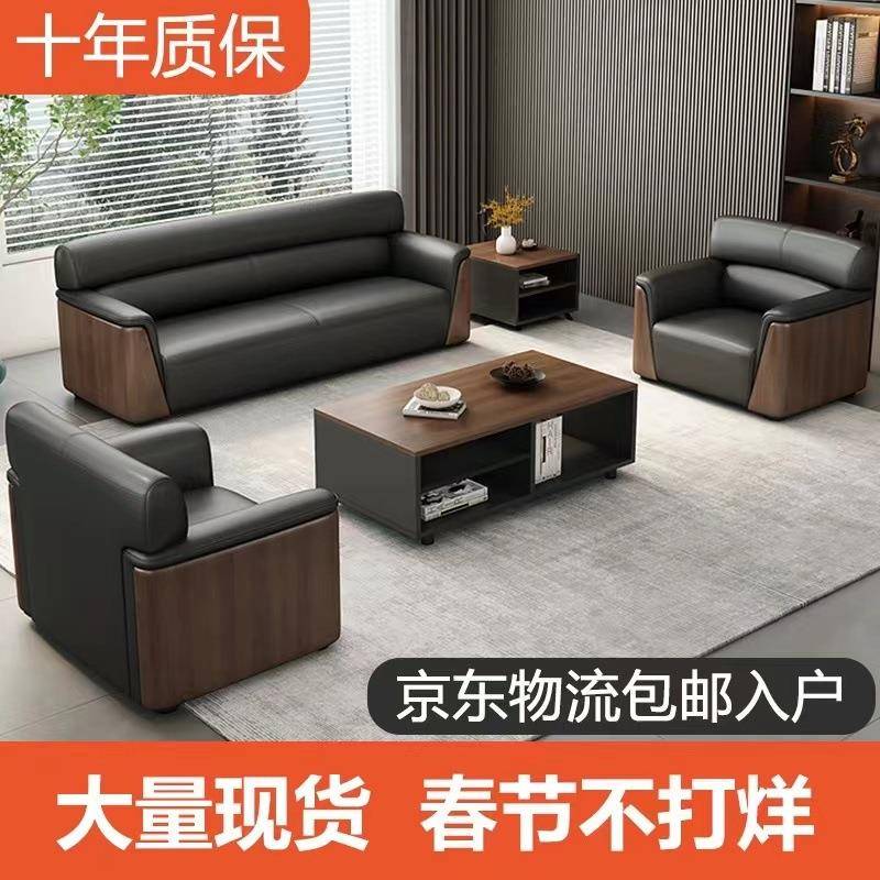 办公室沙发简约现代茶几组合商务接待室休息区洽谈真皮实木三人位