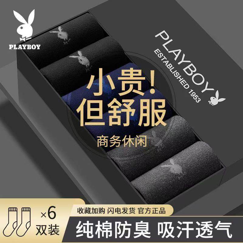花花公子正品男士袜子纯棉透气抗菌防臭夏季薄款中筒袜秋冬商务袜
