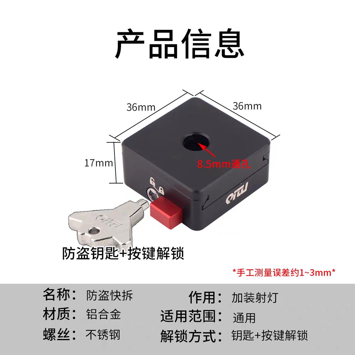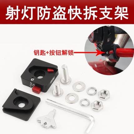 汽车改装引擎盖射灯快拆支架钥匙解锁摩托车外置车灯防盗快拆灯座