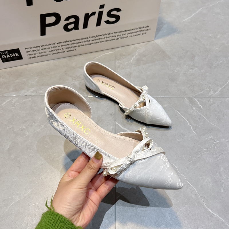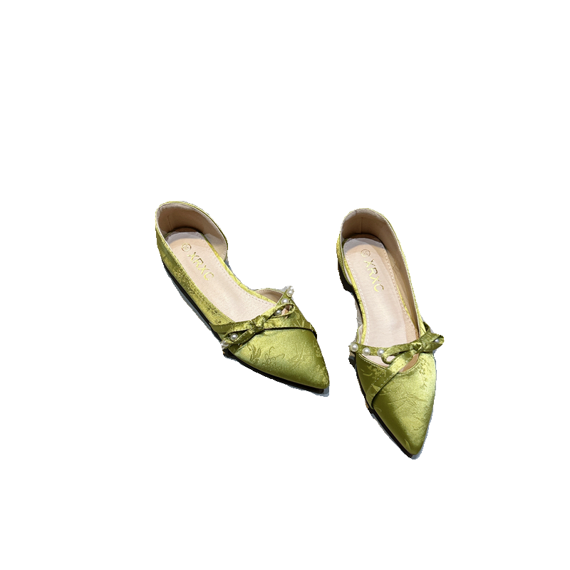 国风旗袍鞋晚晚鞋温柔风仙女瓢鞋蝴蝶结尖头平底浅口百搭法式单鞋