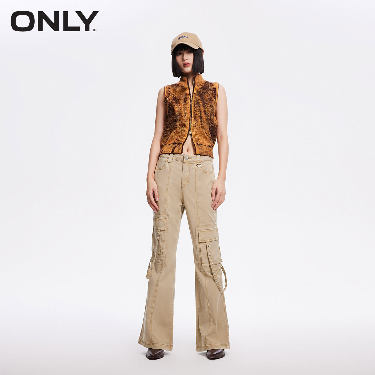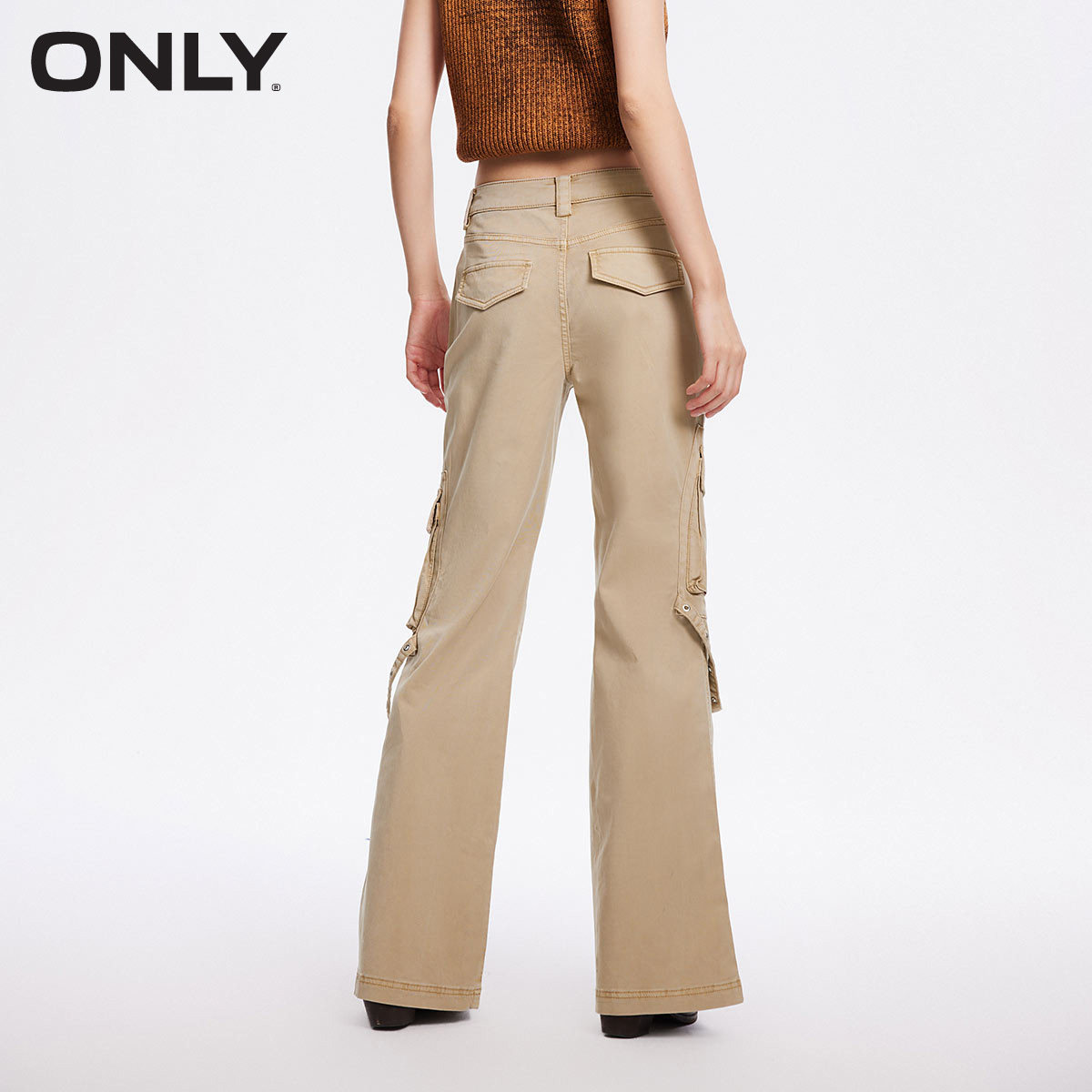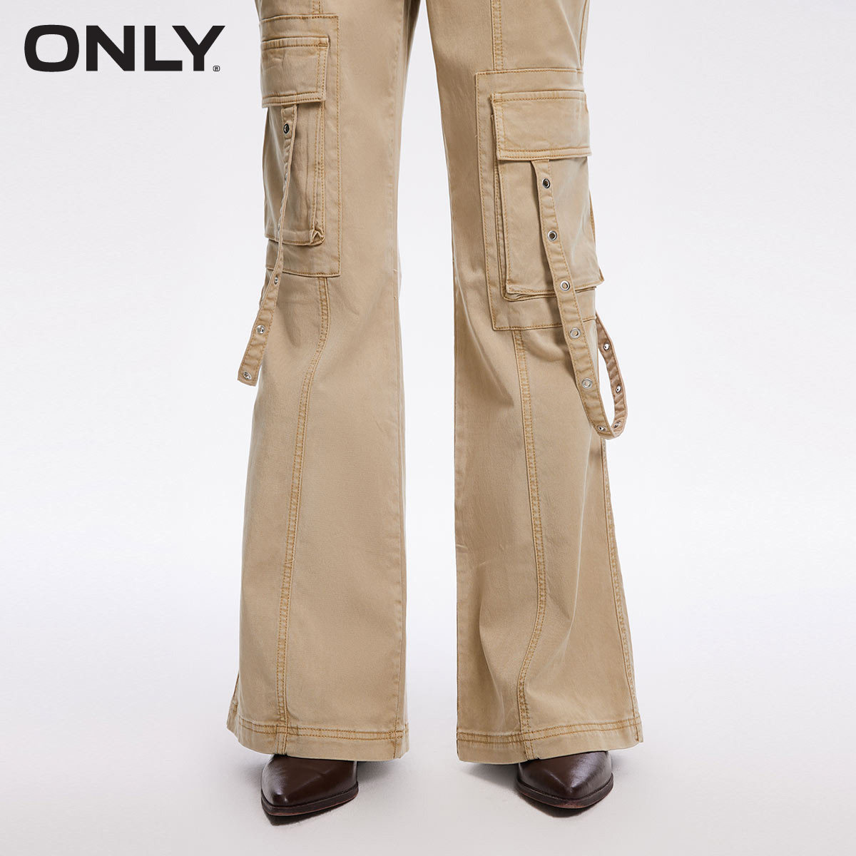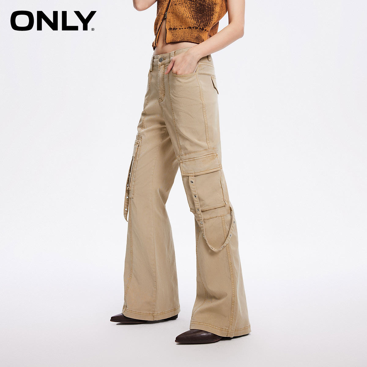 【ONLY奥莱】秋冬复古做旧水洗高腰喇叭裤工装休闲裤女