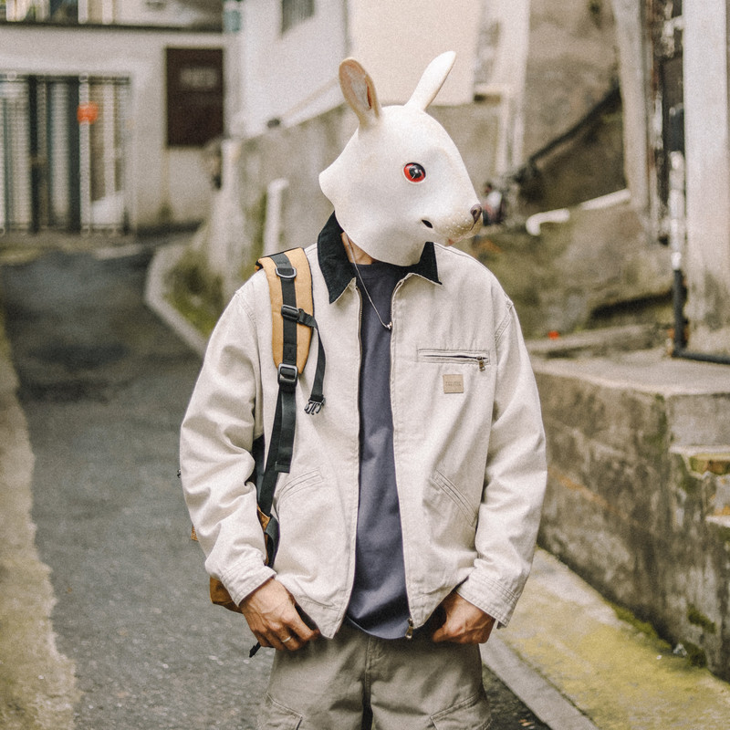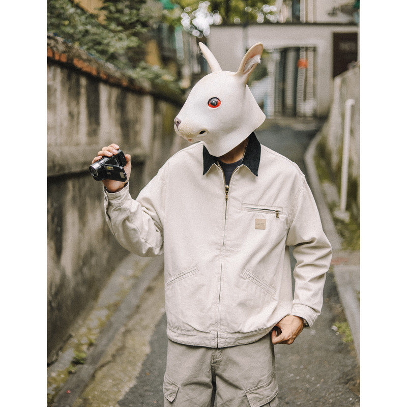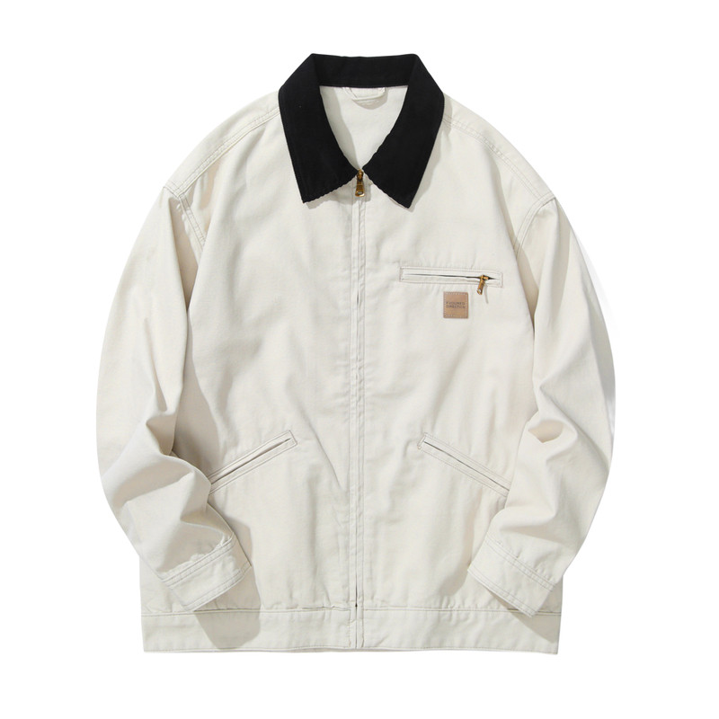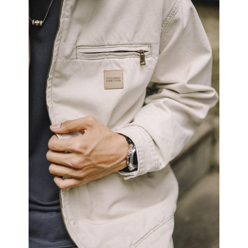 兔先森春秋季美式复古翻领底特律夹克男宽松帆布做旧硬汉工装外套