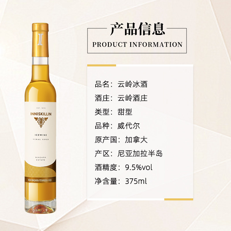 【自营】加拿大inniskillin甜酒云岭珍珠冰酒2023白葡萄酒送年货