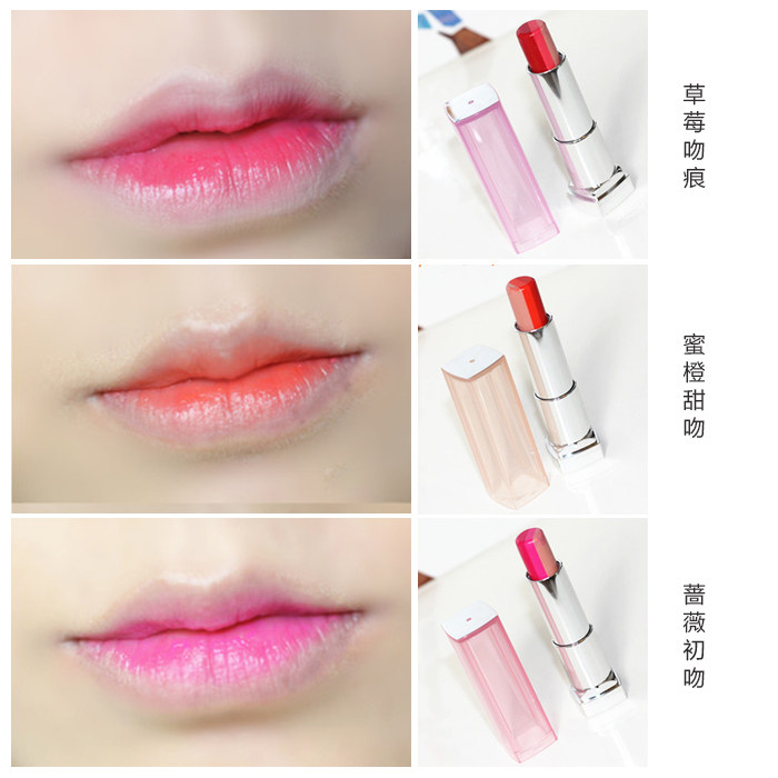 美宝莲好气色轻唇膏咬唇妆口红三色渐变唇膏保湿蔷薇初吻蜜橙