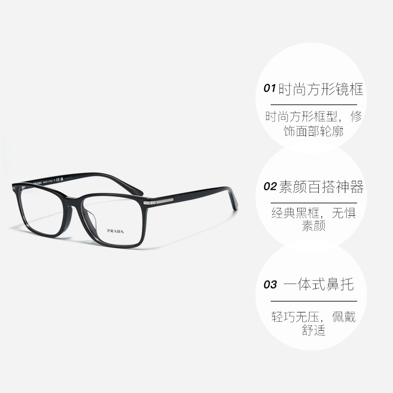 【自营】PRADA普拉达眼镜框男女时尚商务方形超轻光学眼镜架14WVF
