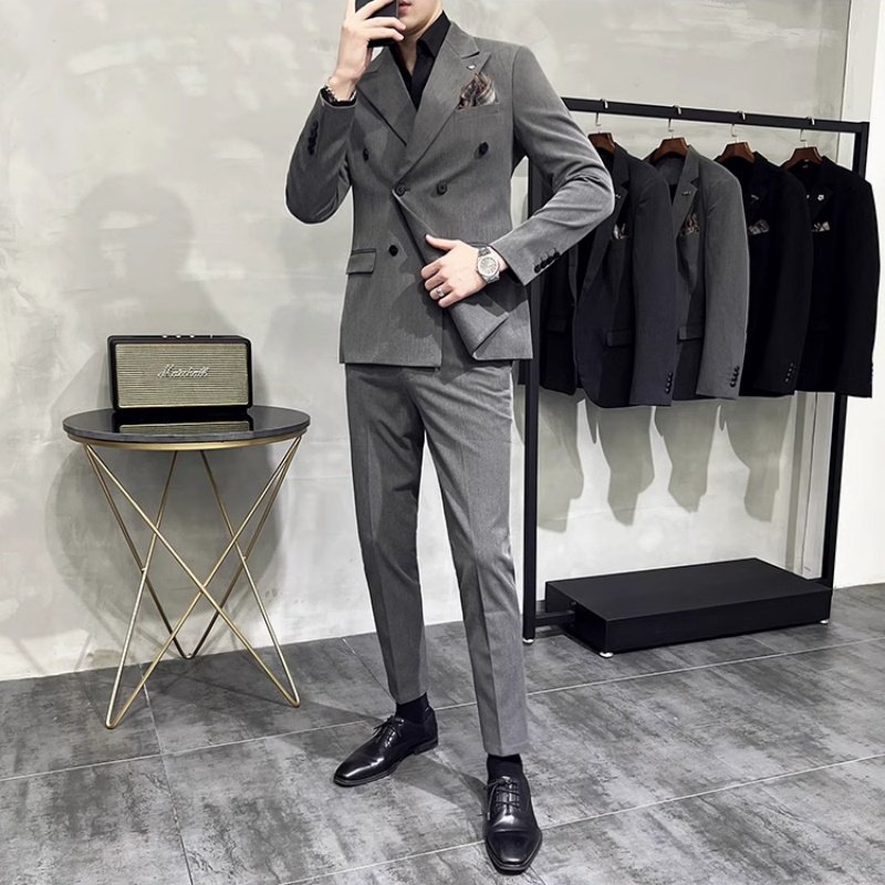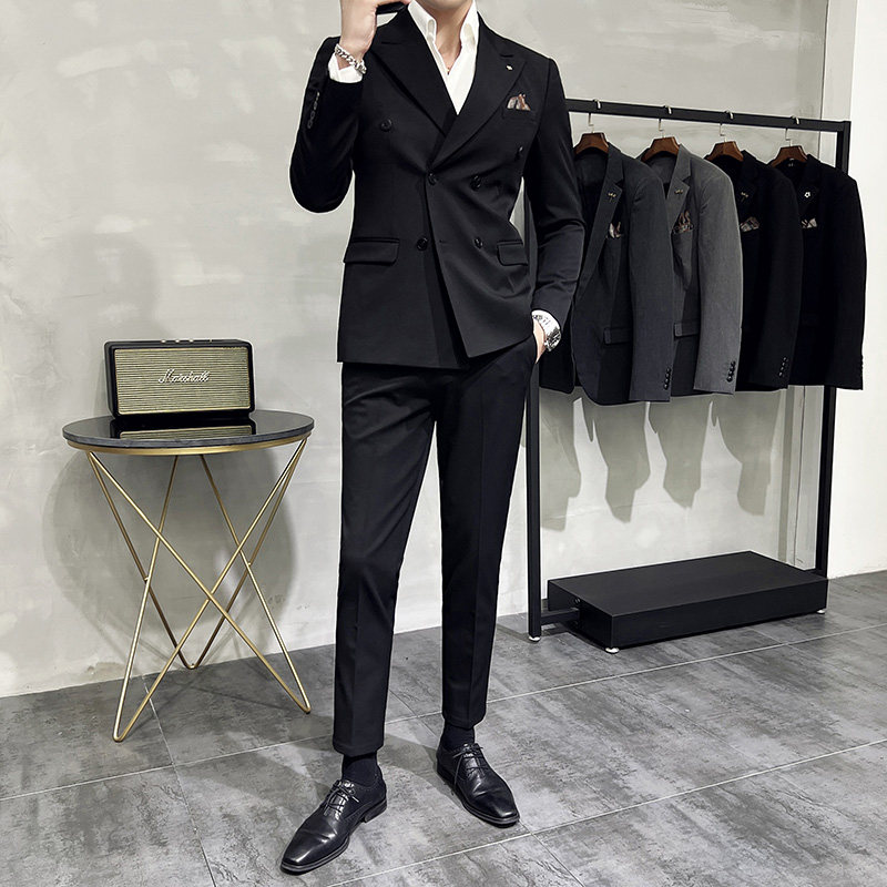 双排扣男士西装套装商务职业正装秋冬款加厚新郎修身西服结婚礼服