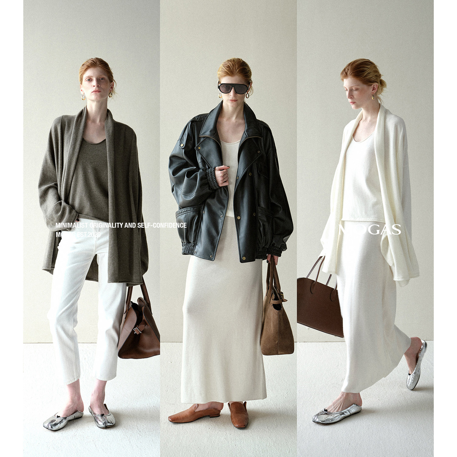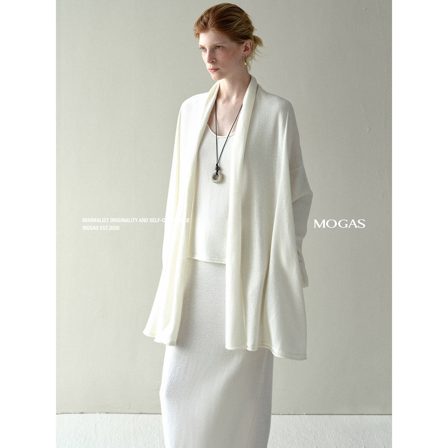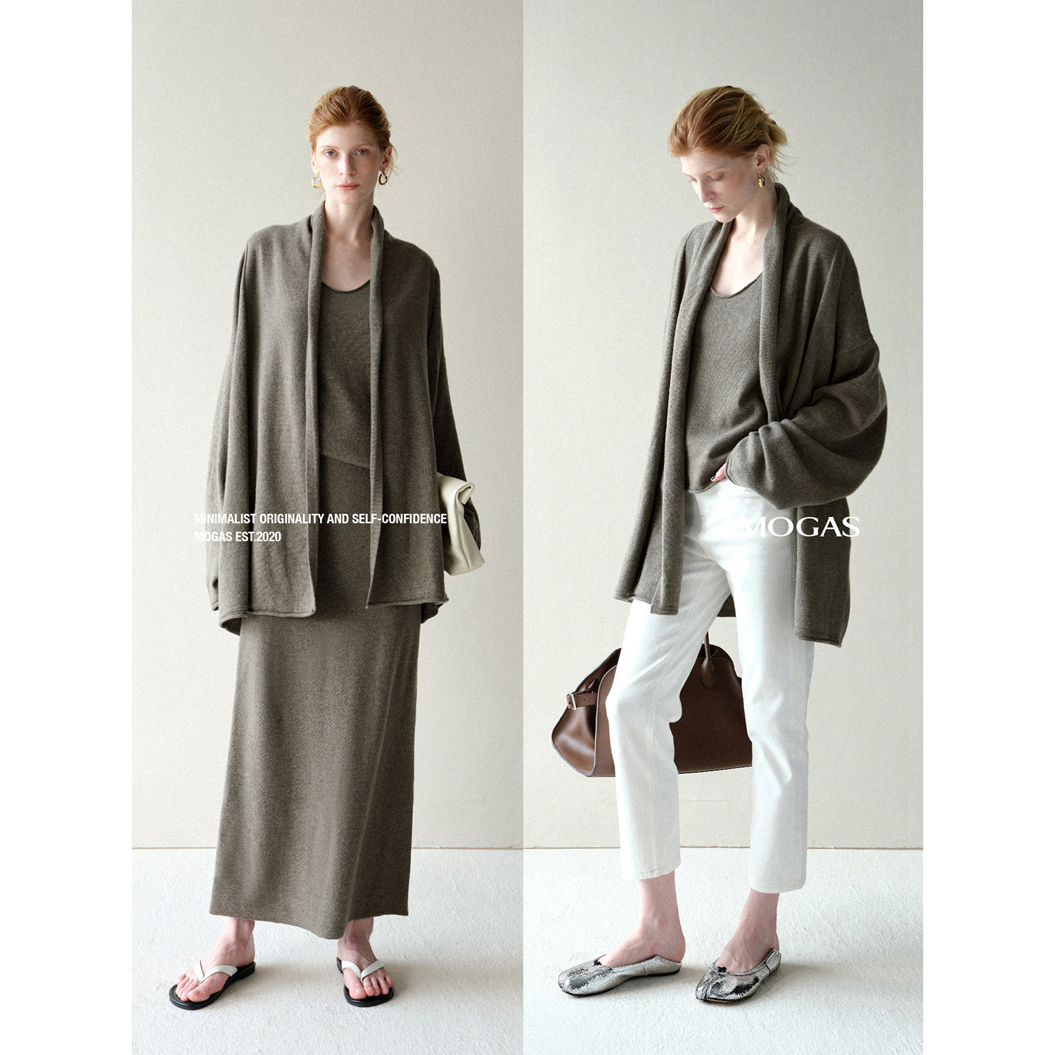 Mogas静奢ROW风 100纯羊毛慵懒卷边纸片人针织开衫吊带半裙女春秋