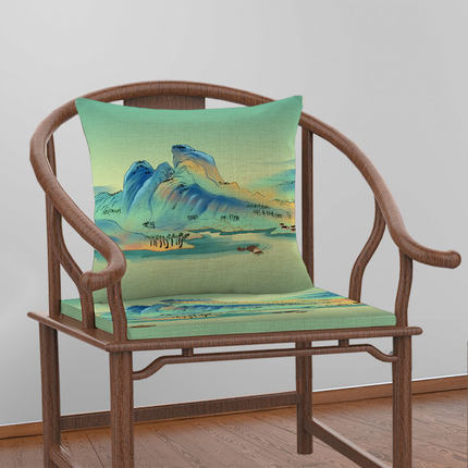 只此青绿千里江山坐垫套椅子中国风红木沙发垫子太师椅垫高档靠垫