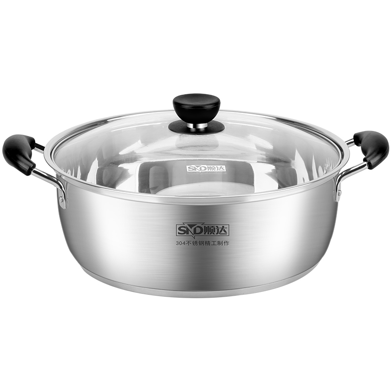 顺达火锅304不锈钢汤锅多功能家用煮锅火锅加厚底明火电磁炉通用