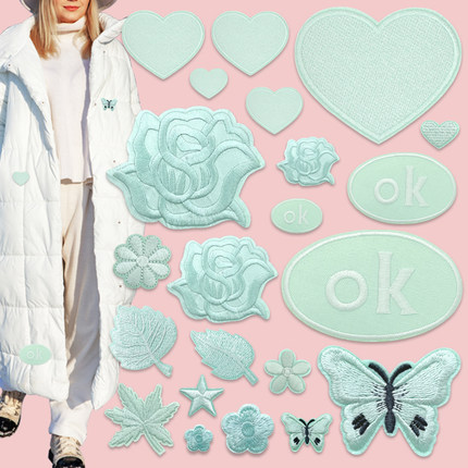 自粘薄荷绿布贴刺绣补丁贴布窗帘台布衣服装饰羽绒服贴花修补破洞