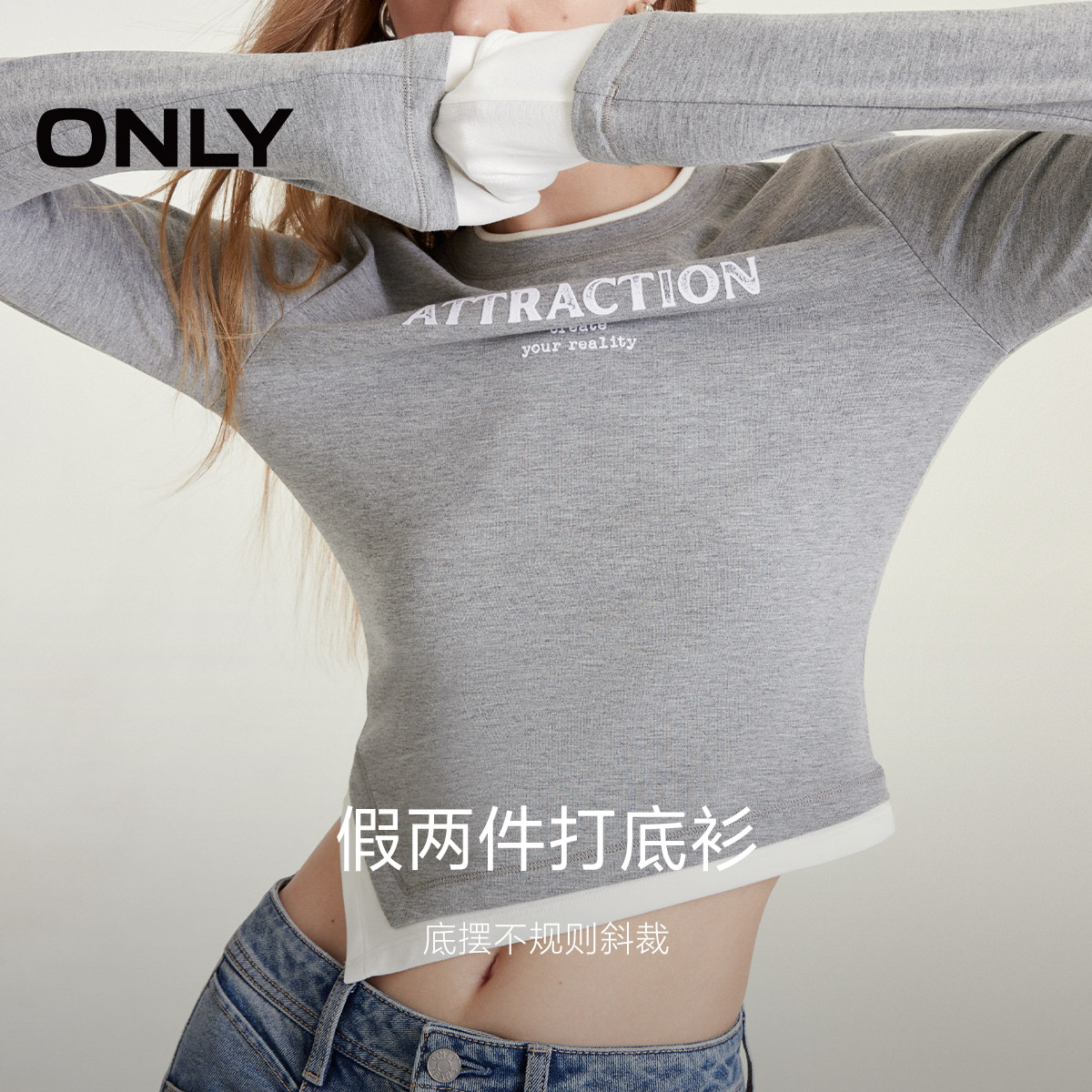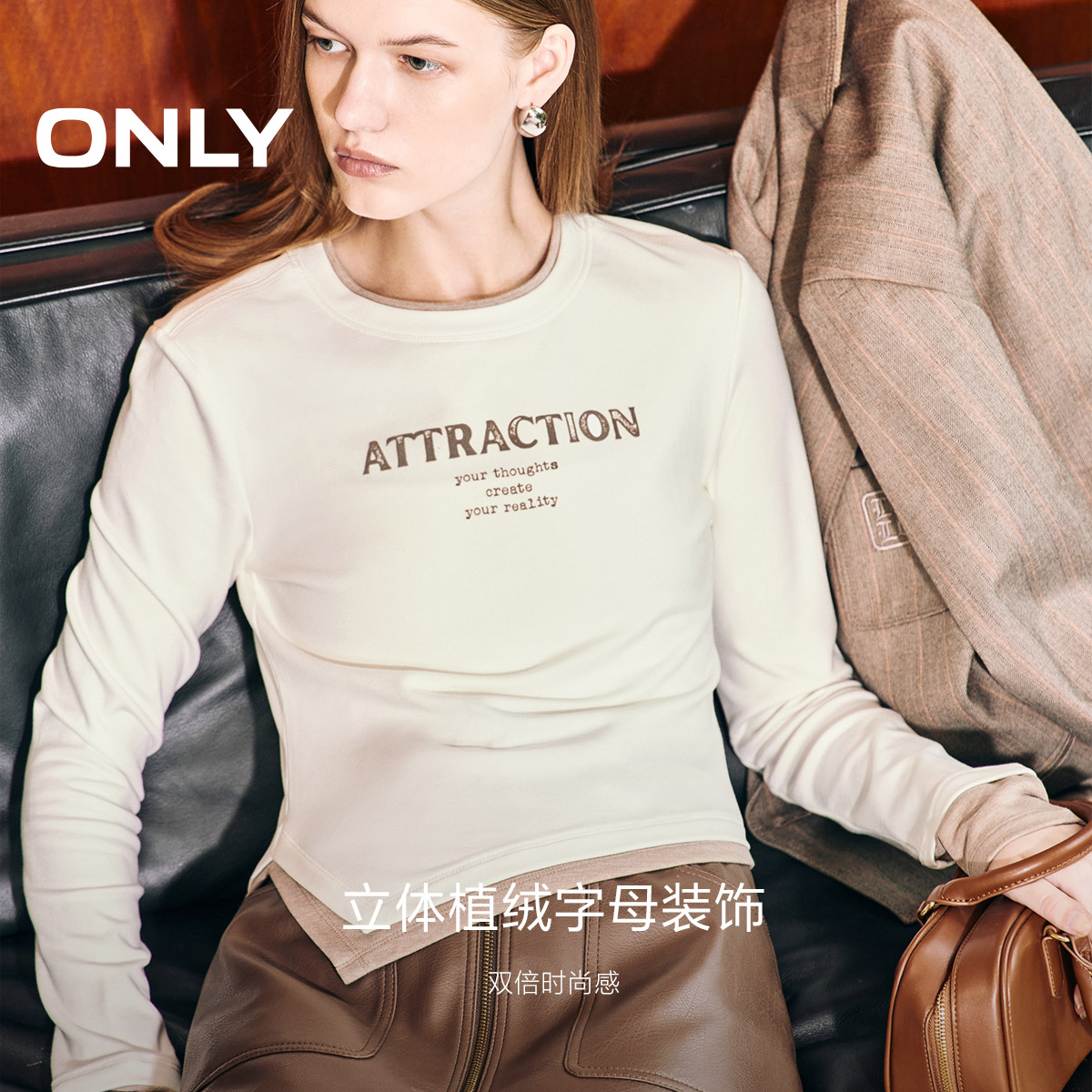 【ONLY奥莱】秋季时尚修身假两件打底衫正肩字母T恤女