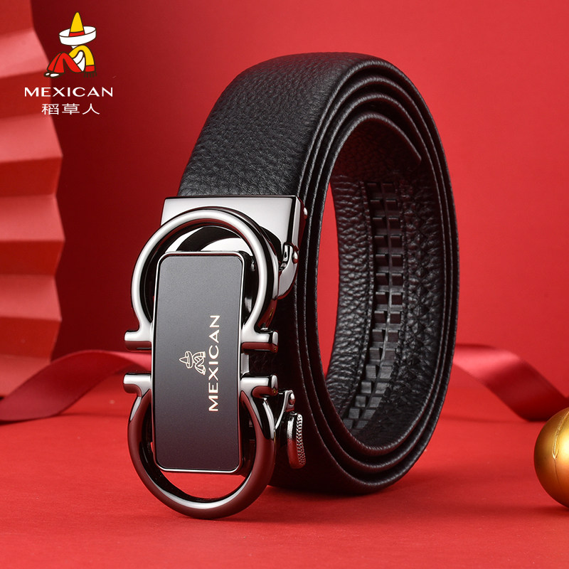 稻草人皮带男真皮大码胖子加长款自动扣男士腰带官方高档新款正品