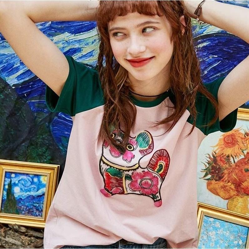 2024新款夏装宽松短袖T恤女潮ins学生韩版刺绣圆领半袖女上衣特价