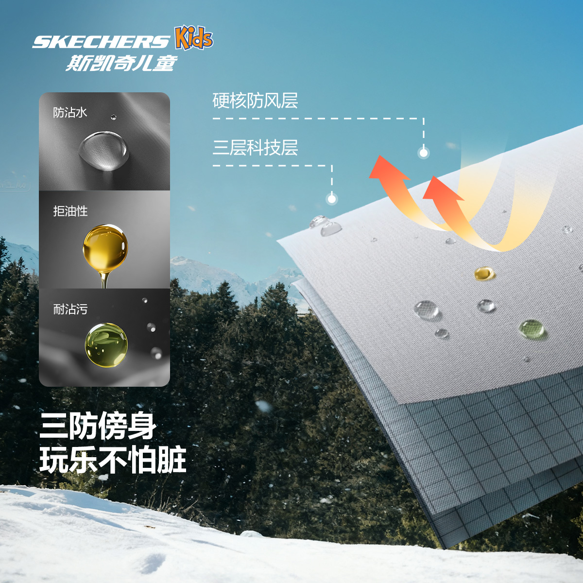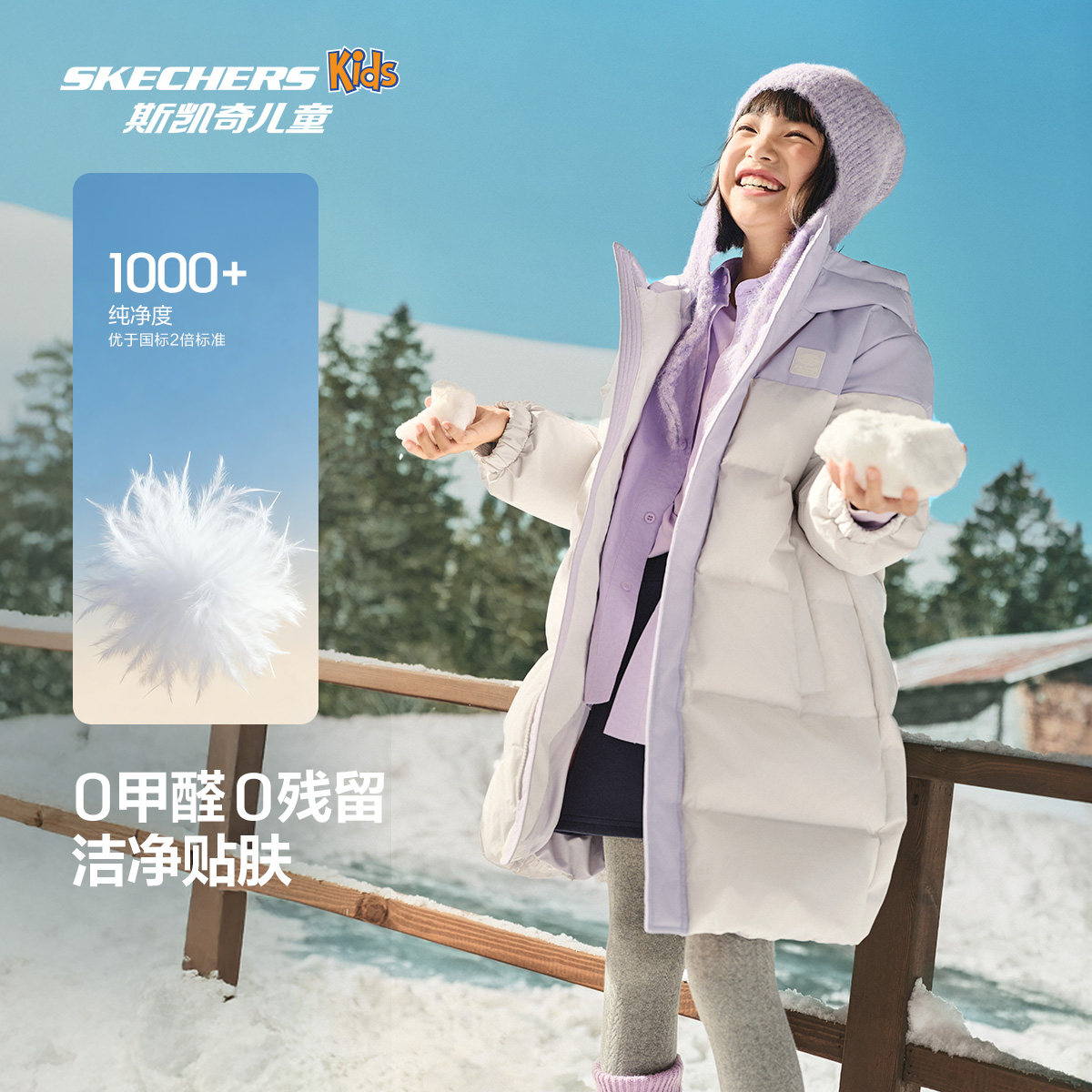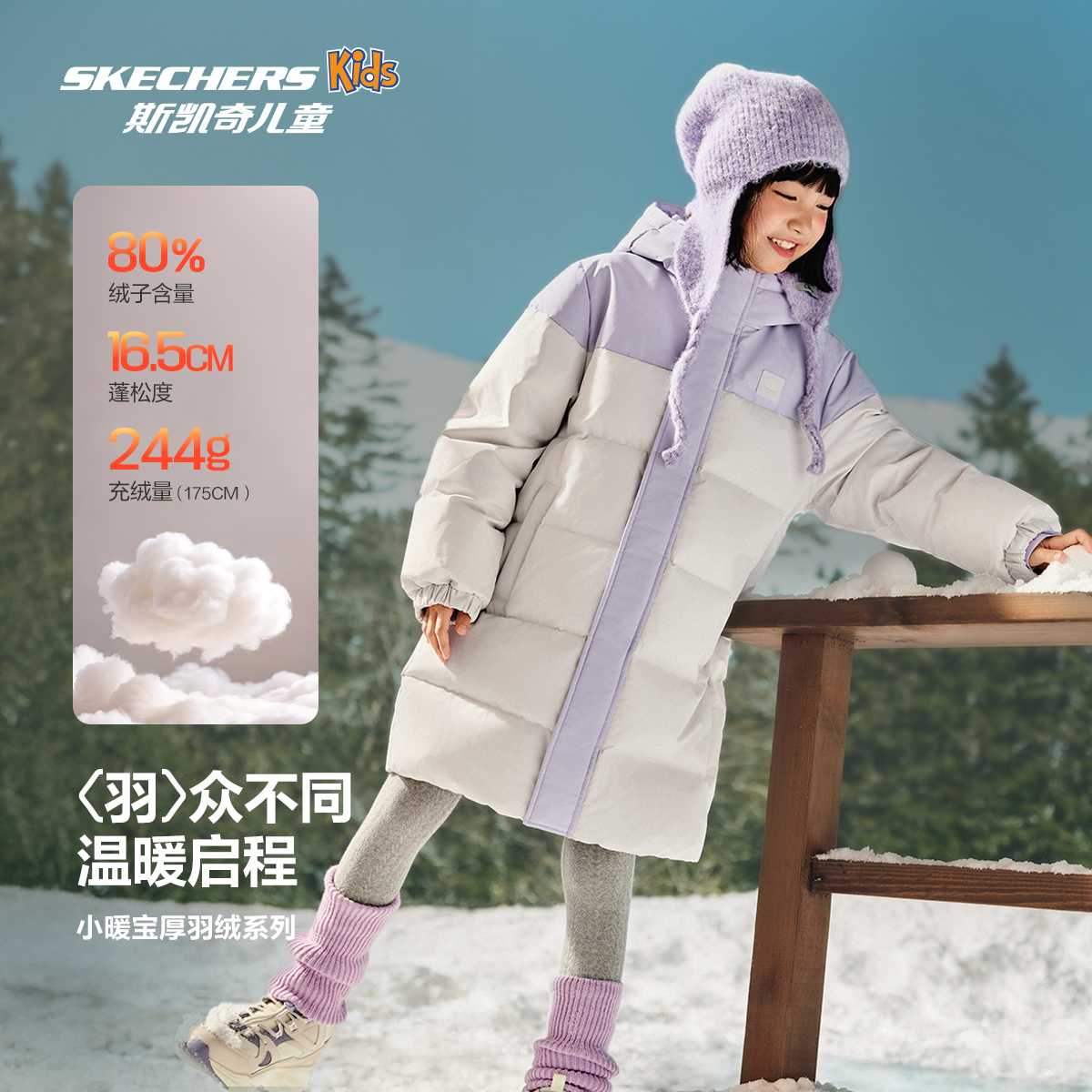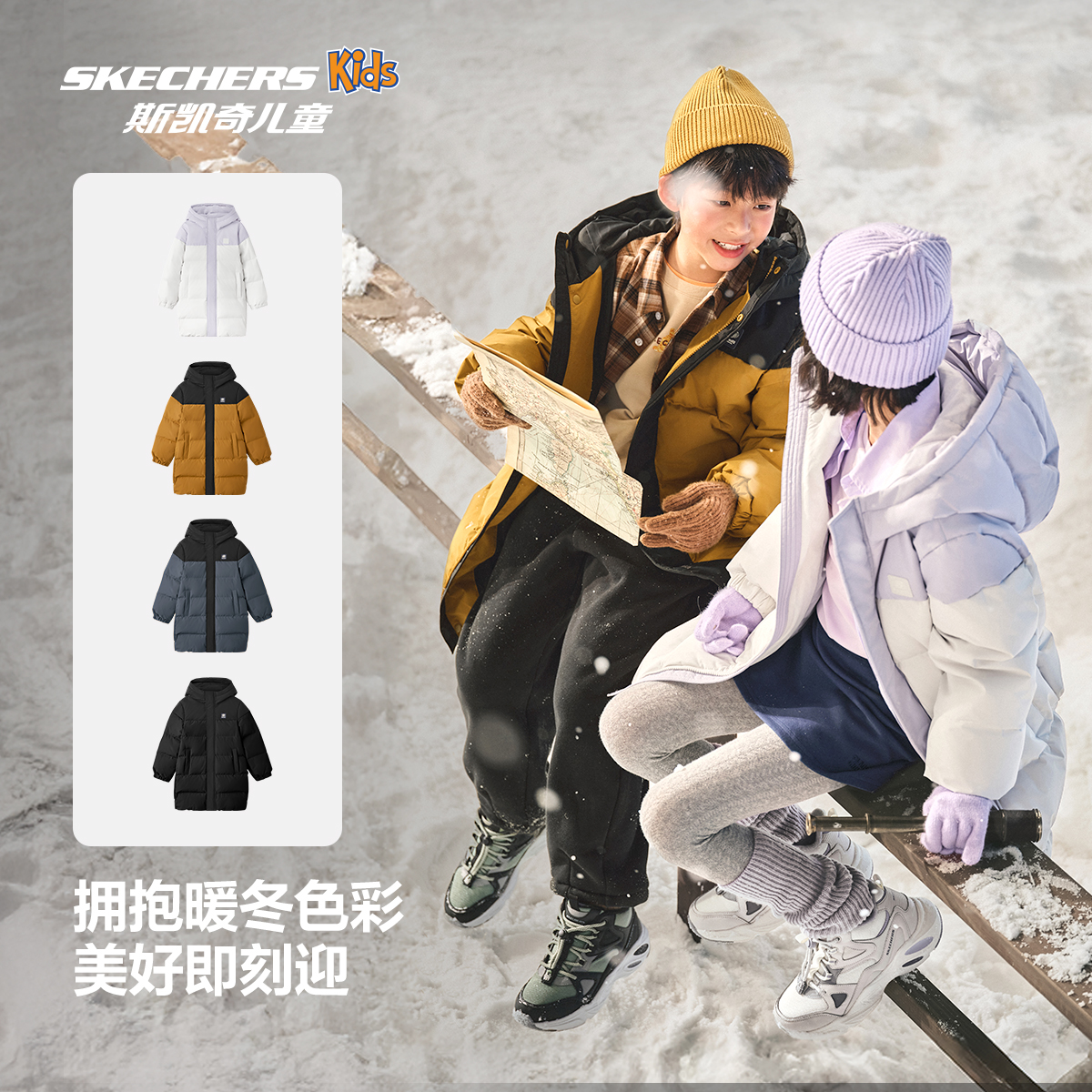 Skechers斯凯奇小暖宝3.0儿童羽绒外套冬季中长款三防保暖羽绒服