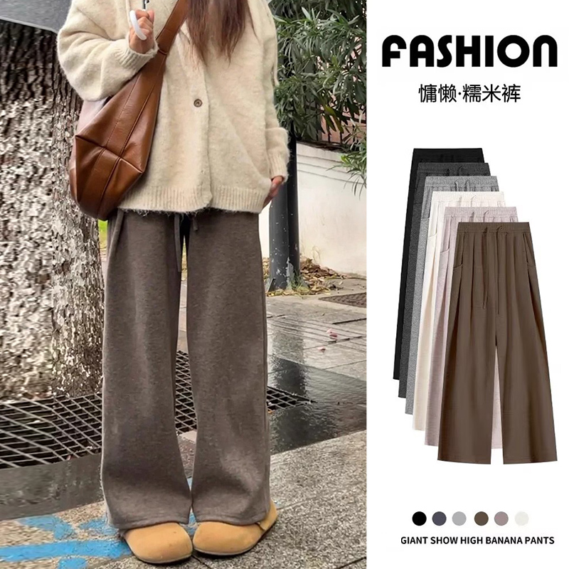 咖色糯米裤女秋季2025新款高腰休闲小个子秋冬羊绒加绒阔腿直筒裤