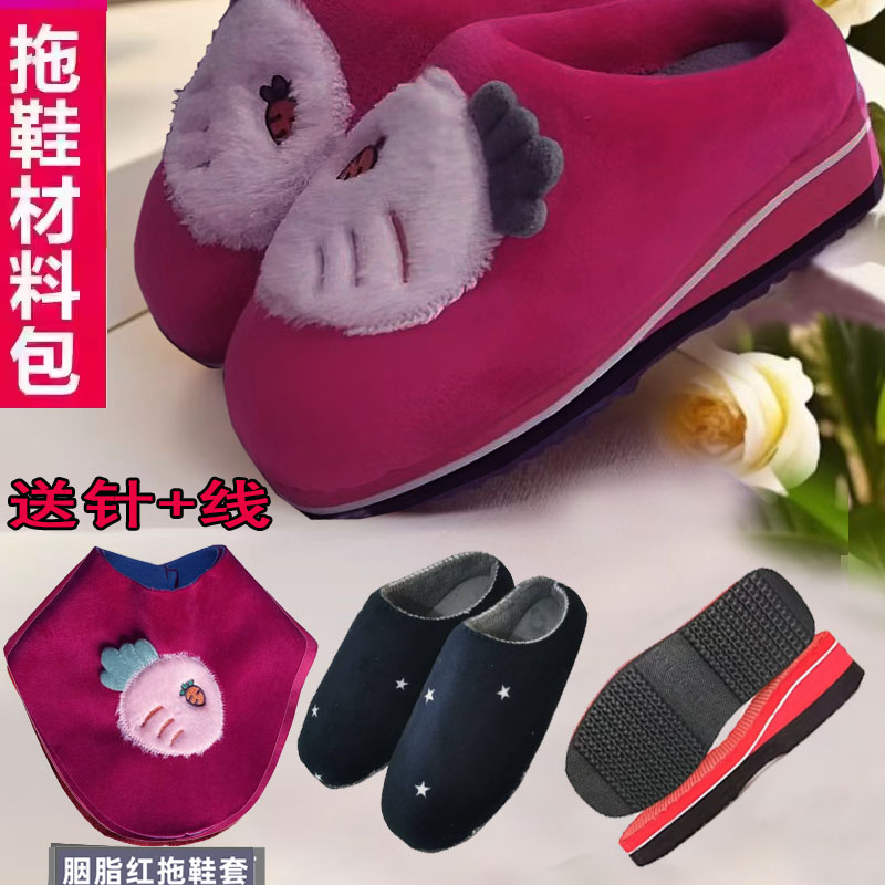 【手工棉拖鞋半成品材料包全套】孺子牛坡跟鞋底鞋帮加厚鞋面内衬