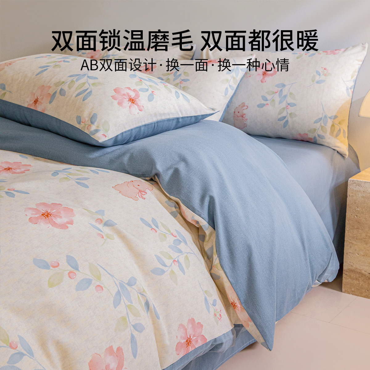红豆加厚磨毛被套单件被单枕套三件套被芯宿舍单人被罩200x230cm