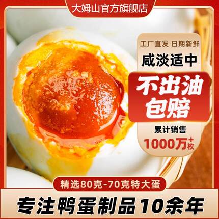 大姆山海鸭蛋咸鸭蛋正宗流油整箱70克20枚熟特大新鲜咸鸭蛋旗舰店