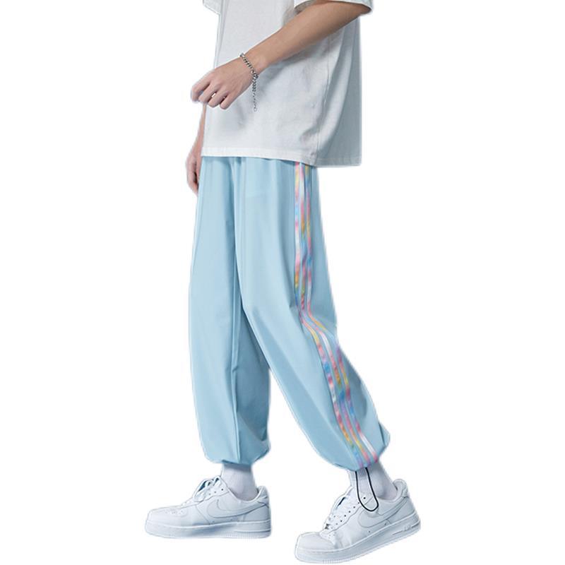 冰丝裤子裤男夏季薄款宽松运动裤潮流休闲直筒阔腿抽绳九分束脚裤