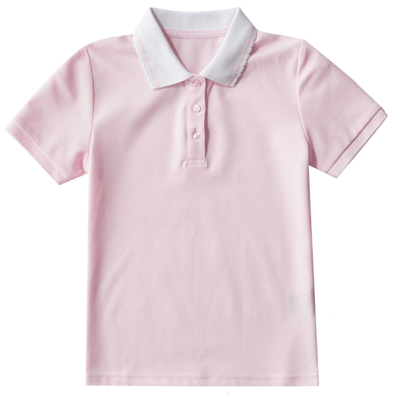 校服珠地网眼女童粉色短袖T恤