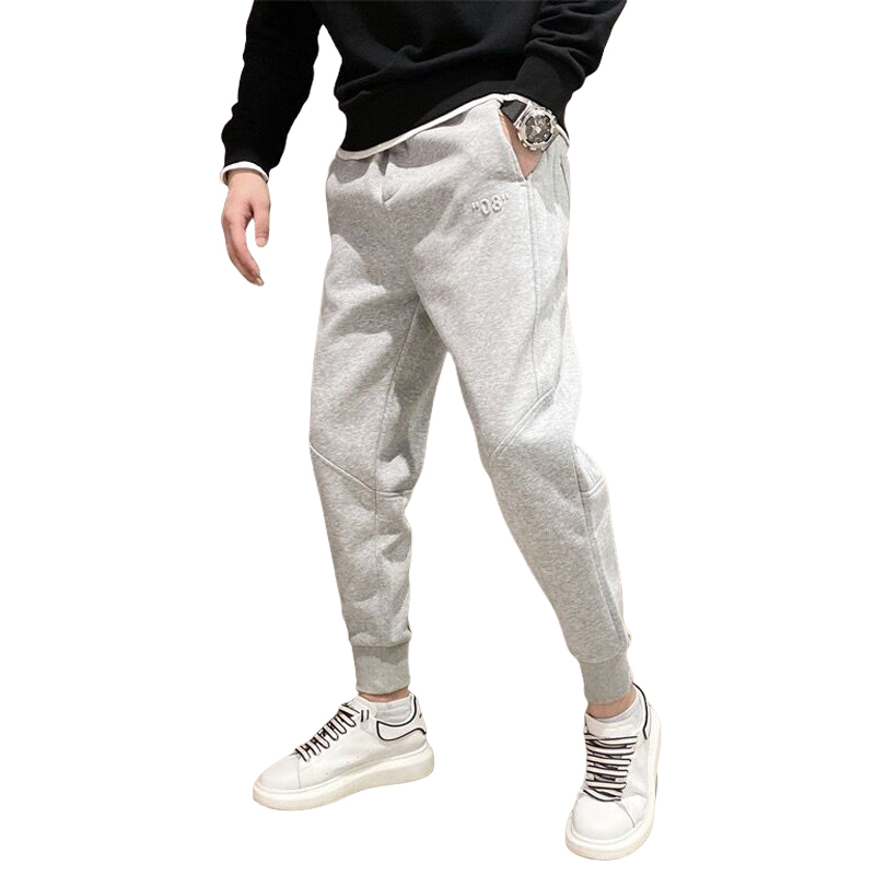 潮牌秋季拼接灰色束脚长裤哈伦运动裤子男士韩版修身小脚休闲卫裤