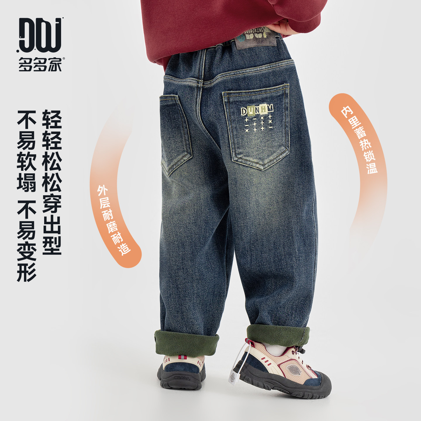 多多家男童加绒牛仔裤2025新款秋冬款儿童中大童保暖洋气裤子冬装