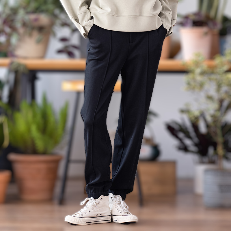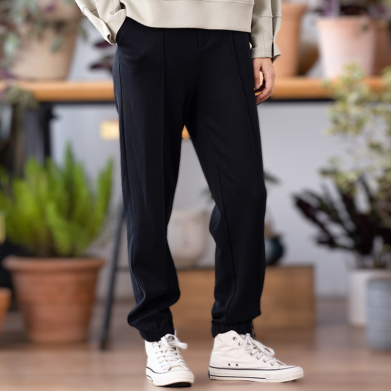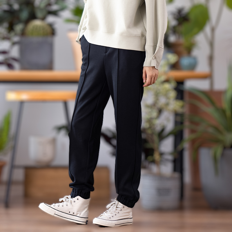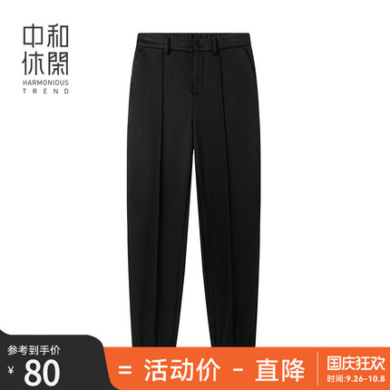 中和休闲中腰黑色束脚长裤