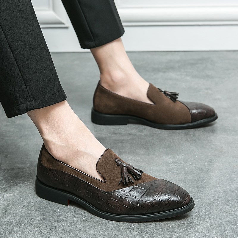 夏季流苏皮鞋男时尚透气韩版潮流男士休闲一脚蹬尖头英伦风小皮鞋