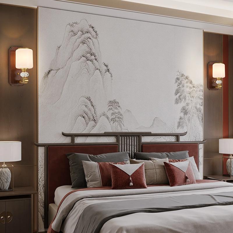 新中式壁灯禅意中国风客厅电视背景墙装饰灯铁艺卧室床头灯过道灯