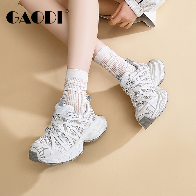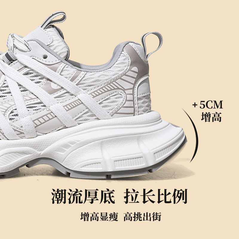 高蒂老爹鞋女夏季薄款2025新款网面透气运动鞋厚底增高休闲女鞋
