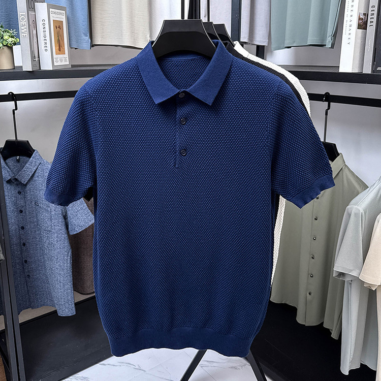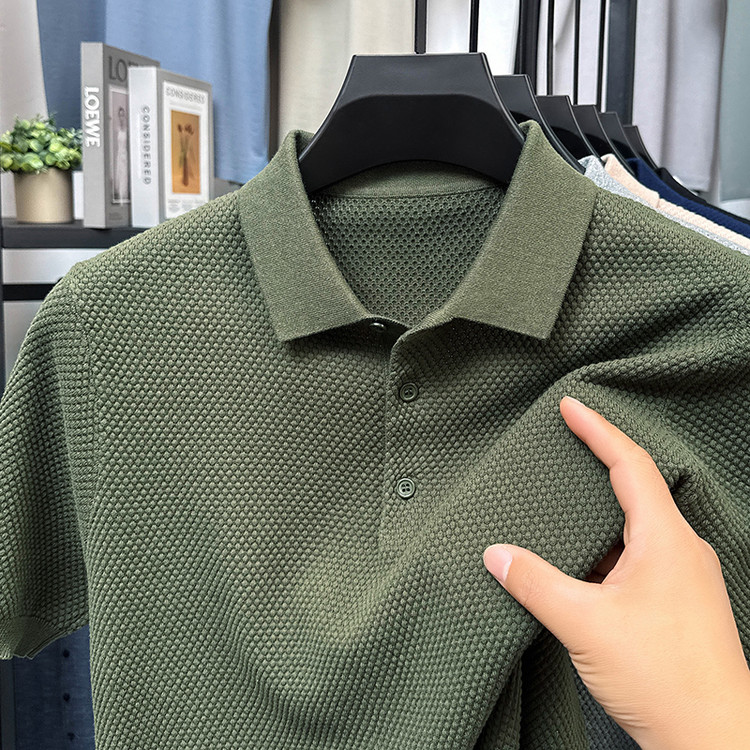 夏季男士菠萝纹100%纯棉短袖t恤透气Polo衫中青年针织半截袖上衣