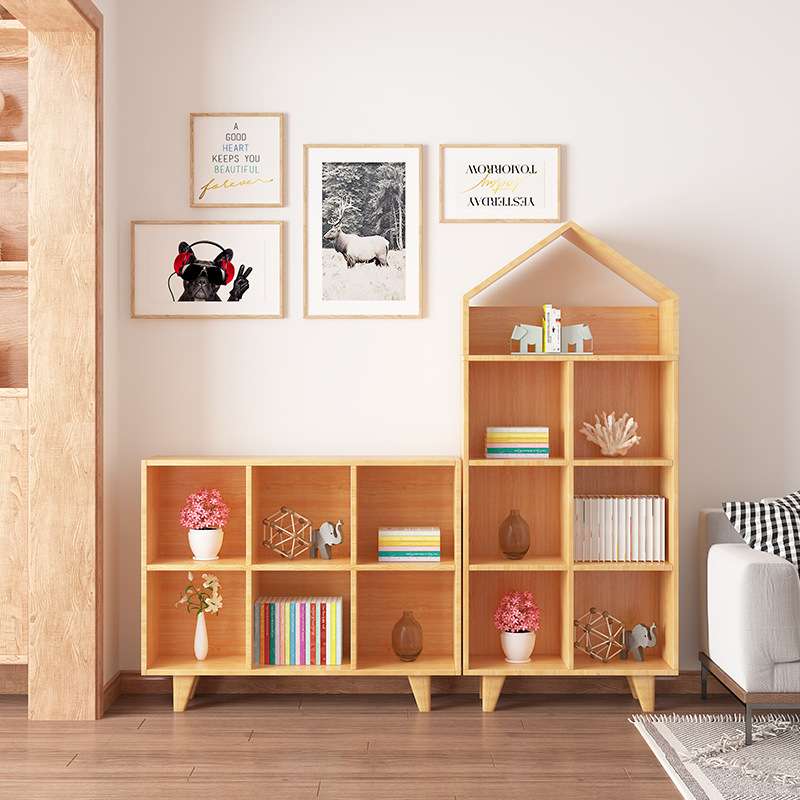 儿童书架简易置物架北欧实木书柜矮柜组合置物柜幼儿园松木格子柜