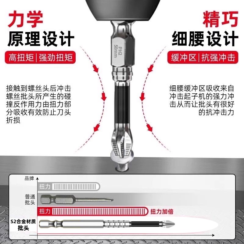 抗冲击防滑十字批头强磁性高硬度手电钻电动螺丝刀六角风披头套装